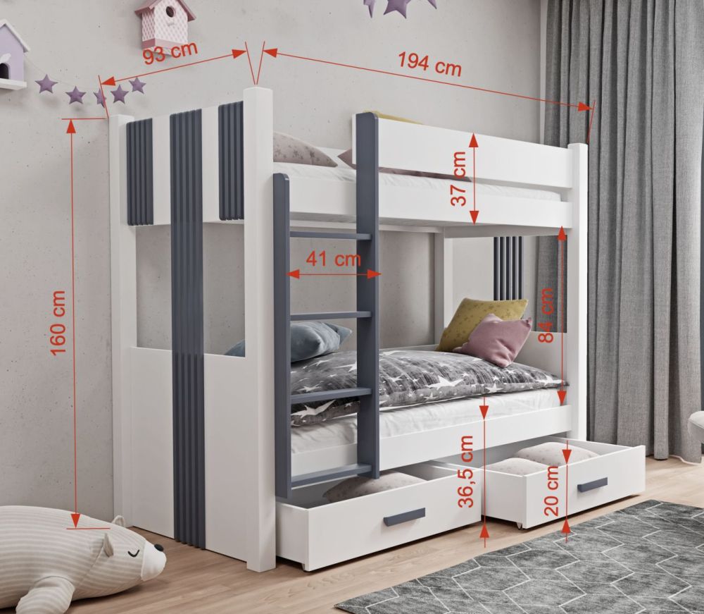 ARTEN dviaukštė lova su stalčiais 80×200 cm