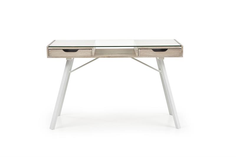 Matmenys: 120/60/76 cm, medžiaga: laminuota MDF / milteliniu būdu dažytas plienas / stiklas, spalva: sonoma ąžuolas / balta