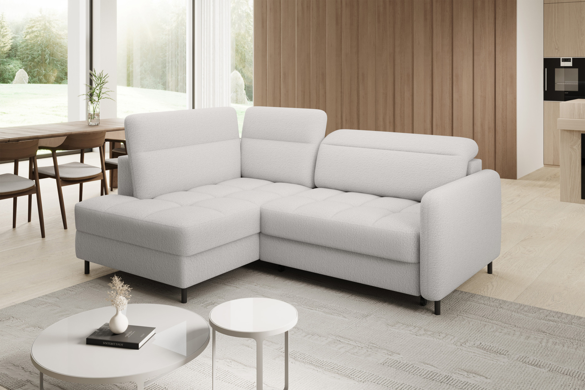„Barea“ kampinė sofa – elegantiškas ir funkcionalus, 208x160x100 cm dydžio baldas su reguliuojamais galvos atramomis ir 10 cm aukščio juodomis metalinėmis kojelėmis. Tvirta konstrukcija, pagaminta iš aukštos kokybės medžiagų, užtikrina ilgaamžiškumą, o kruopščiai suformuota sėdynė ir atlošas garantuoja komfortą ir tinkamą nugaros atramą. Modernus „Barea“ kampinės sofos dizainas puikiai tinka tiek minimalistiniam, tiek rafinuotesniam interjerui. Galima rinktis iš įvairių audinių ir spalvų, ji yra estetiškai patraukli ir funkcionali, idealiai tinka kasdieniam poilsiui ir svečių priėmimui.