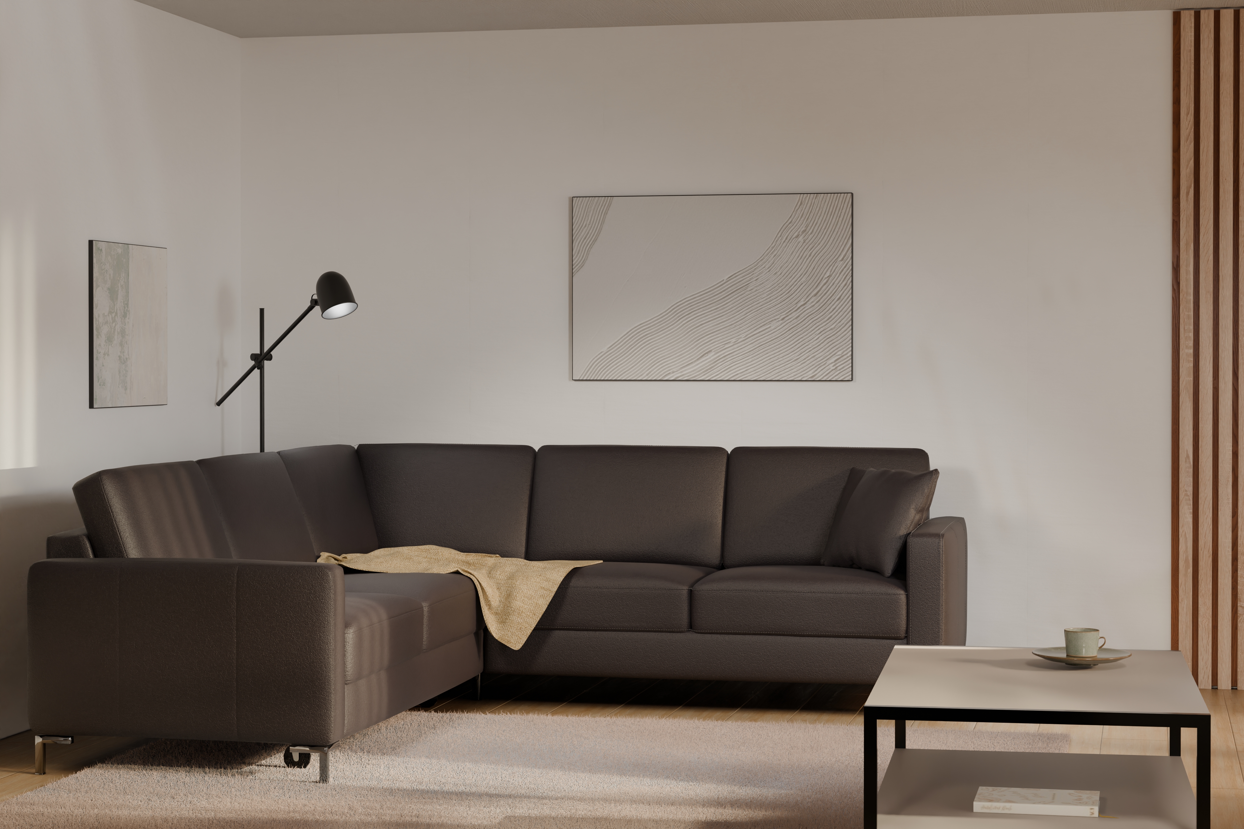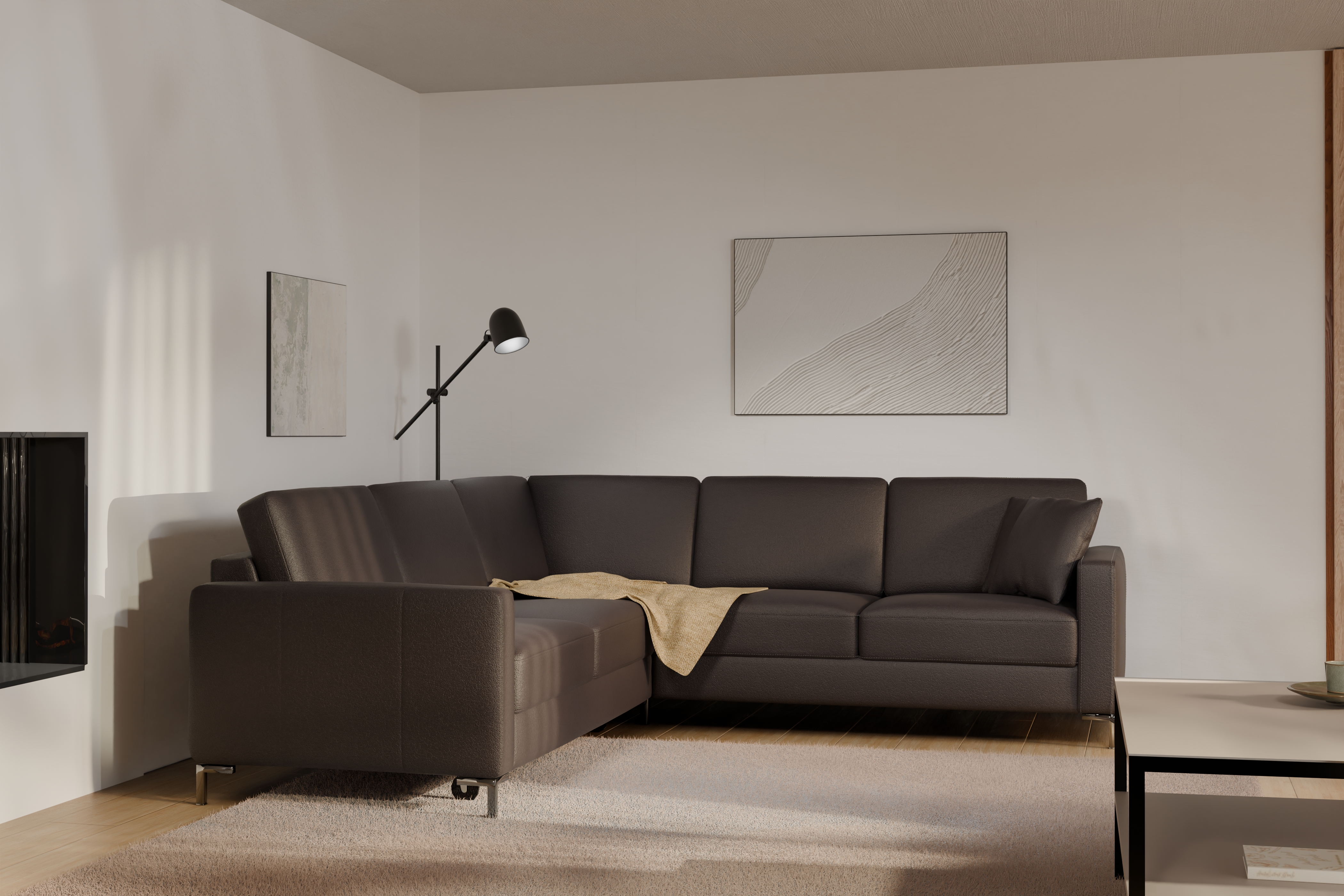 Kampinė sofa „Basic“ siūloma su plačiu audinių ir odų pasirinkimu, todėl galite ją priderinti prie savo interjero stiliaus. Gamintojas padengė kojas metaline apdaila, kuri pabrėžia šiuolaikišką baldo charakterį. Šis kruopščiai suprojektuotas baldas išsiskiria aukštos kokybės meistriškumu ir dėmesiu detalėms.