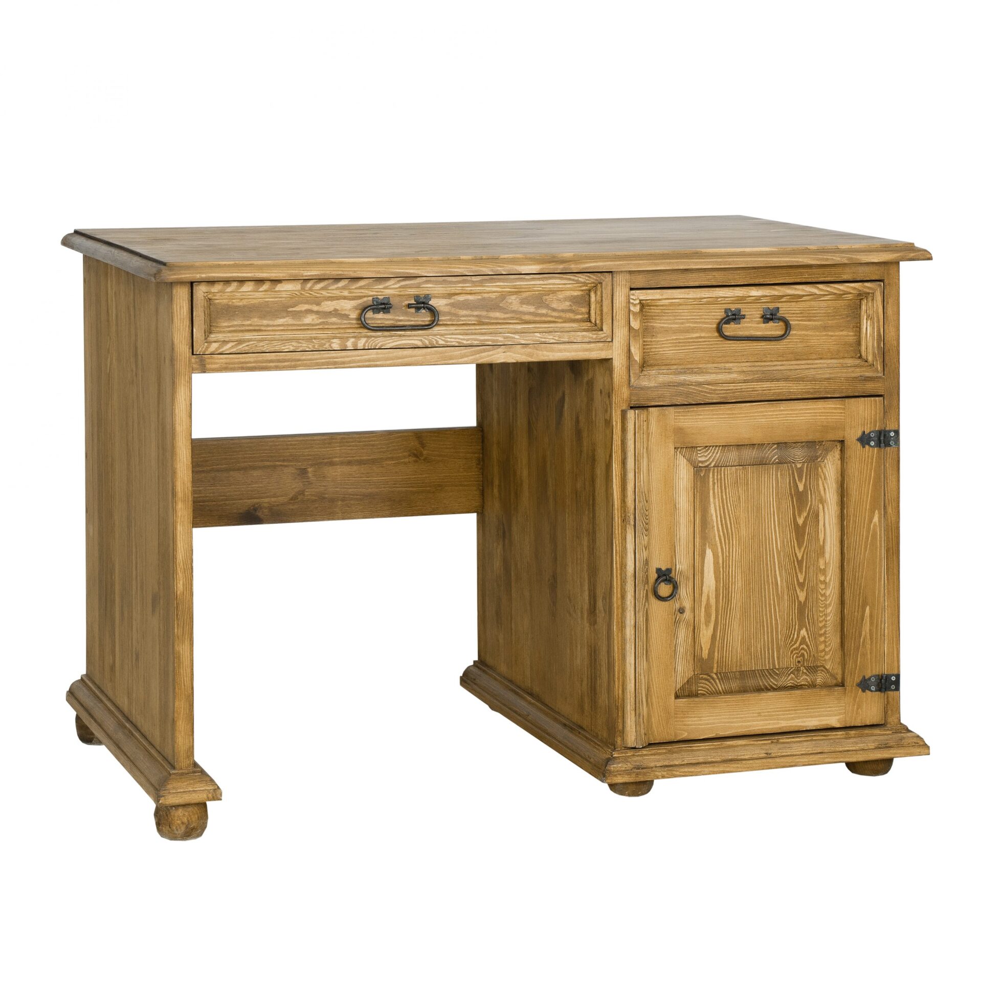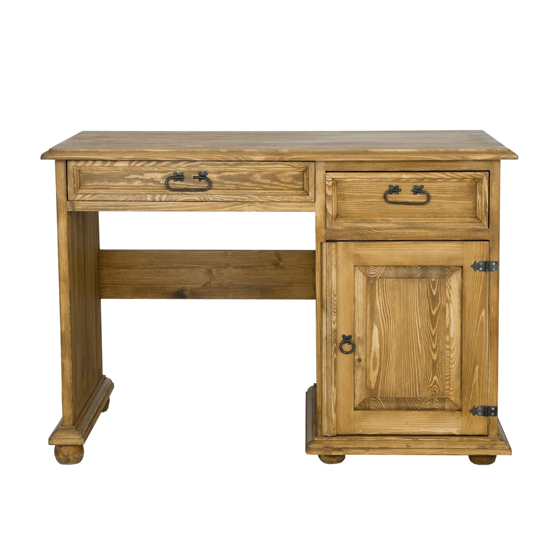 Vaškuotas BR701 stalas – tai baldas, puikiai tinkantis namų biurui. Kaimiško stiliaus, jis pagamintas iš tvirtos pušies medienos. Jame yra erdvus stalviršis, po kuriuo yra du stalčiai ant medinių bėgelių (arba stalčius ir lentynėlė klaviatūrai). Be to, stalas turi vieną spintelę su durelėmis, kurių kiekvienoje yra lentynėlė. Jis pasižymi patvaria ir tvirta konstrukcija. Jo gamyboje buvo panaudoti rankų darbo metaliniai vyriai ir rankenos su sendinto rašto efektu. BR701 stalas sukurs šiltą, unikalią atmosferą jūsų biure, teigiamai paveikdamas ne tik jūsų savijautą, bet ir darbo kokybę.