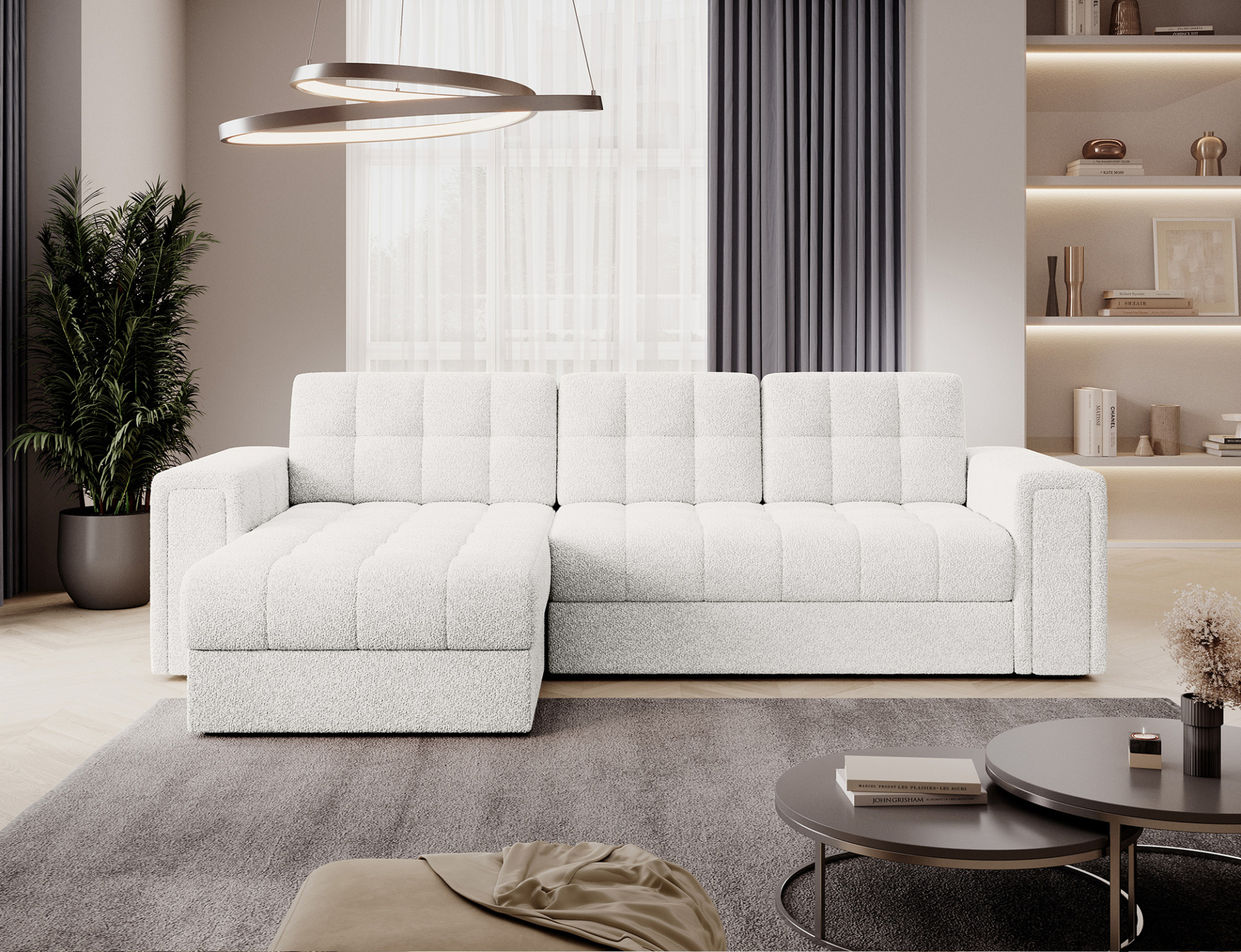 „Blenvi“ kampinė sofa – tai modernus, universalus baldas, puikiai tinkantis svetainei. Ji aprūpinta B tipo vingiuota spyruokline sėdyne ir aukštos kokybės T2540 poliuretano putomis, užtikrinančiomis aukštą komfortą. Ji turi „Dolphin“ miegojimo funkciją, kuri greitai transformuojasi į patogią lovą. Be to, kampinėje sofoje yra patalynės skyrius, kuriame lengva laikyti daiktus. Visiškai apmuštas atlošas leidžia ją pastatyti bet kurioje kambario vietoje. Stilingas dizainas su modernia estetika leidžia jai puikiai derėti prie įvairių interjero dizainų.