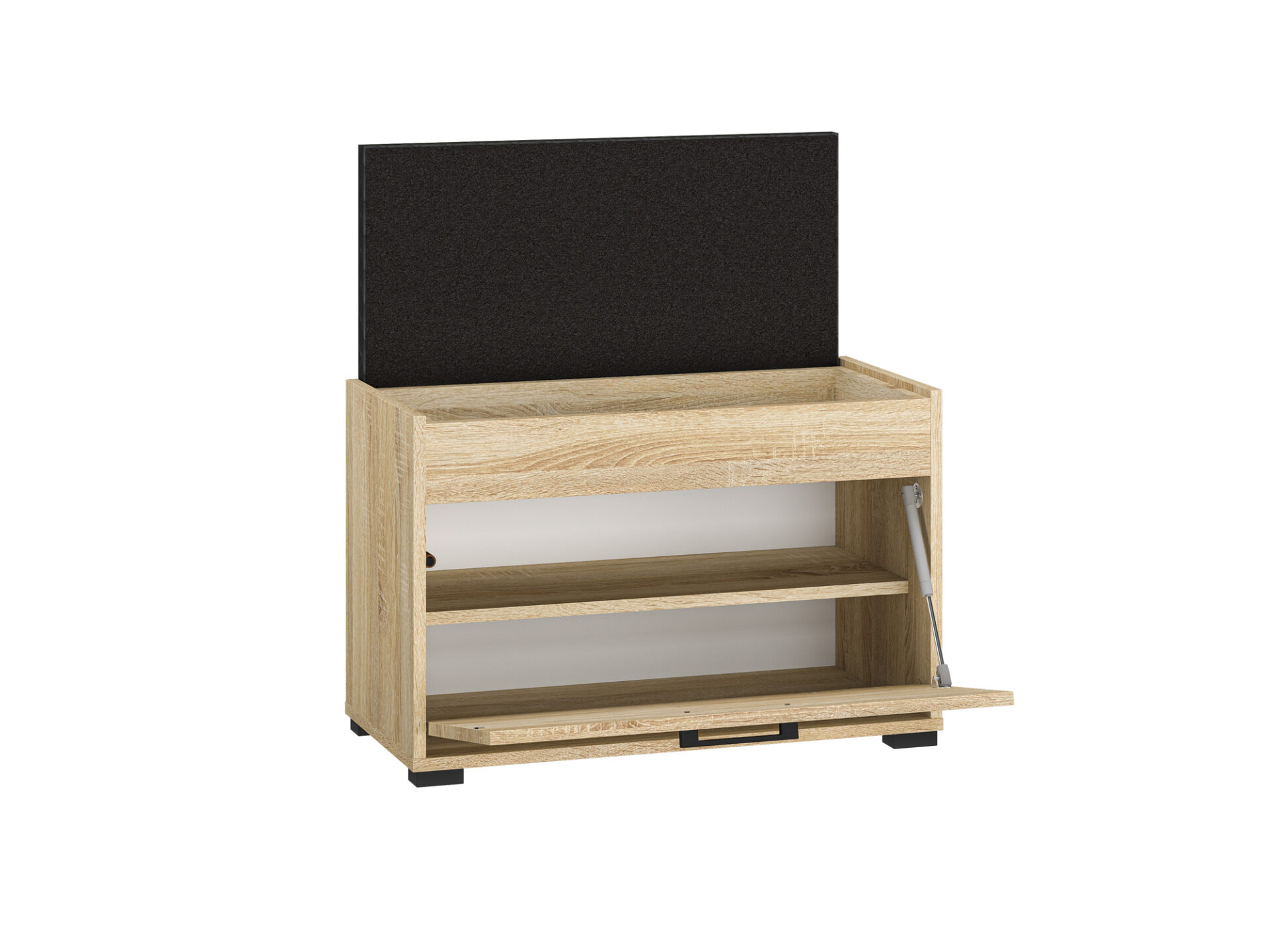 Batų spintelė „Caro 03“ – puikus sprendimas bet kokiam prieškambariui. Viduje yra dvi erdvios nišos batams laikyti. Spintelė atsidaro iš viršaus. Dangtis aprūpintas moderniu dujiniu liftu, kuris žymiai padidina kasdienio naudojimo patogumą. Spintelė taip pat naudojama kaip sėdynė. Minkštas, apmuštas stalviršis leidžia patogiai sėdėti ir lengvai apsiauti bei nusiauti batus. Be to, „Caro“ raštu marginta dirbtinė oda suteikia bet kokiam interjerui elegancijos. Po sėdyne paslėpta praktiška daiktadėžė, pvz., šepečiams, tepalui ar batų laikymui.