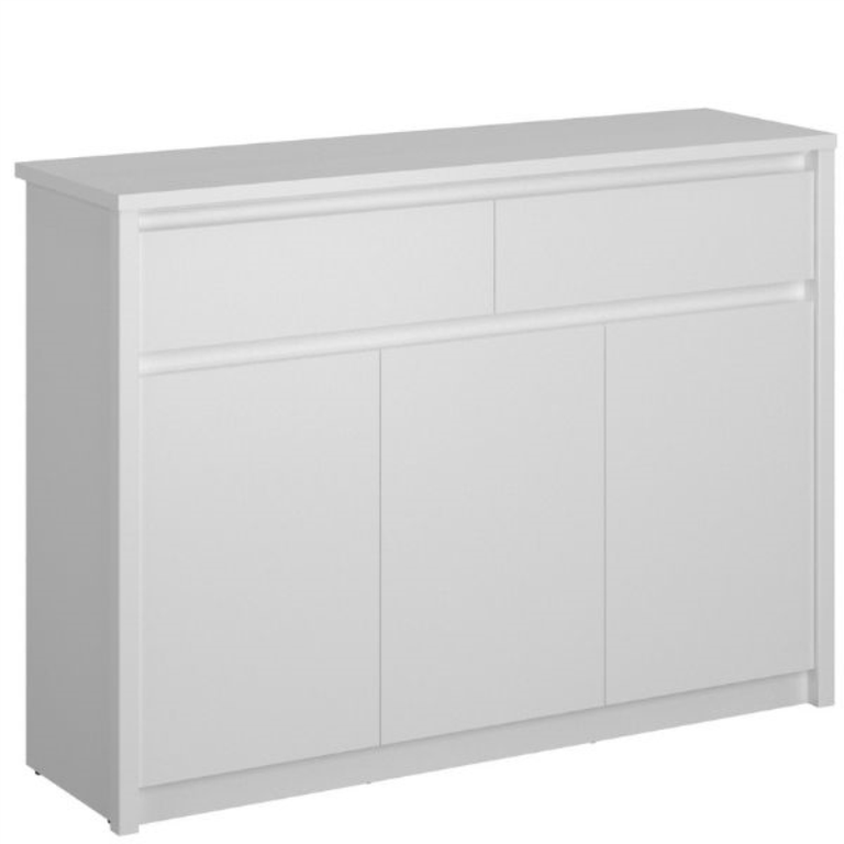 Kolekcija: Erden Surinkta: Ne Plotis: 125,4 Aukštis: 91,2 Gylis: 36,2 3D2S komoda yra viena iš dviejų ERDEN kolekcijos komodų. Gražios, klasikinės linijos ir balta spalva suteikia jai subtilios elegancijos. Paprastas dizainas ir sistema be rankenėlių užbaigia išvaizdą. Komoda susideda iš dviejų stalčių ir trijų uždarų spintelių, todėl ji yra labai erdvi ir funkcionali. Joje galima laikyti daugybę kasdienių daiktų ar dokumentų, be to, ji puikiai tinka biure. Raginame jus susikurti savo išdėstymą ir peržiūrėti kitus ERDEN kolekcijos gaminius.