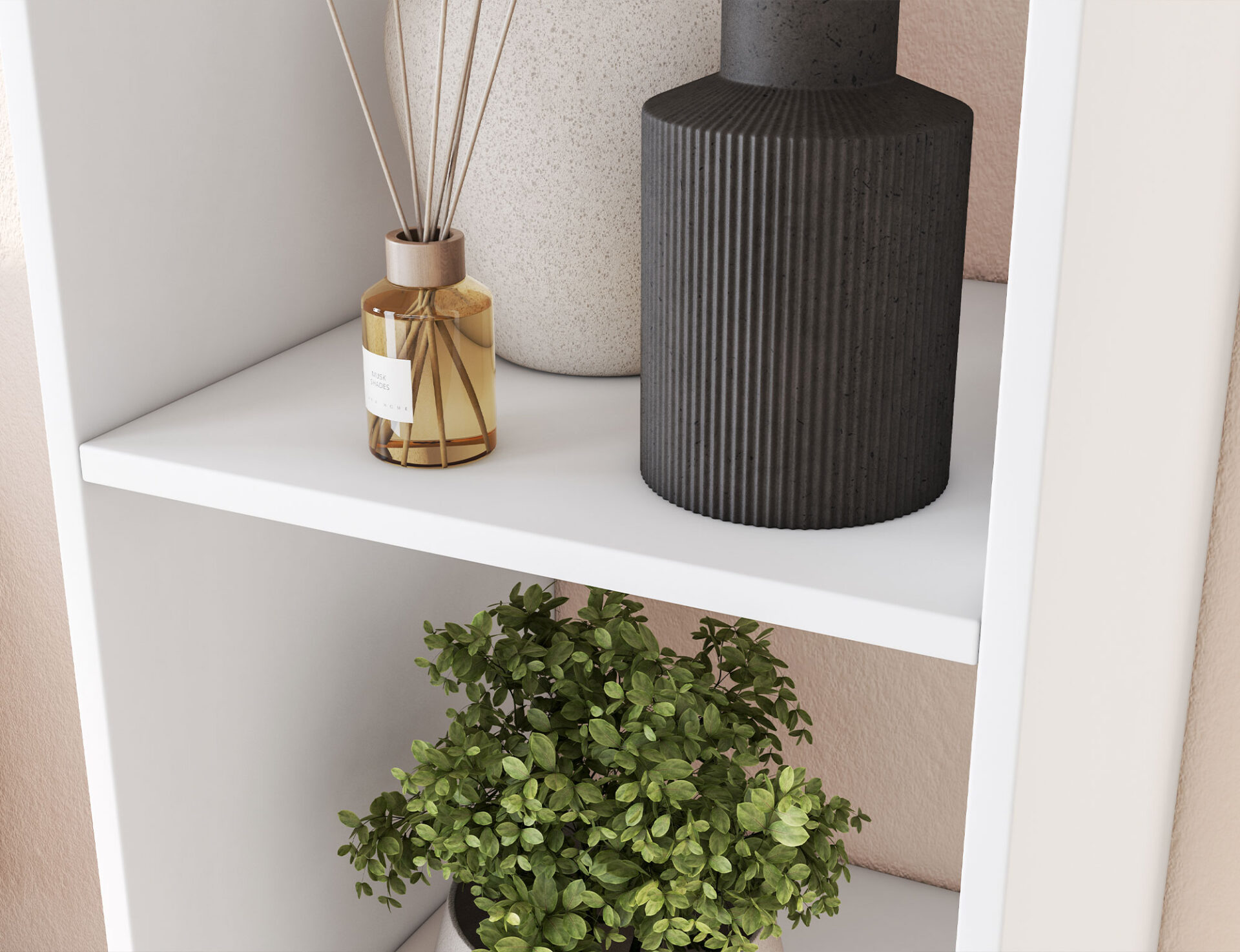 „Figgi“ lentyna – kompaktiškas ir stilingas baldas, puikiai tinkantis įvairiems kambariams. 40 cm pločio, 150 cm aukščio ir 40 cm gylio ji puikiai tinka mažesnėms erdvėms ir siūlo funkcionalų daiktų laikymo būdą. Stalčius, kurio maksimali apkrova yra 3 kg, idealiai tinka smulkiems daiktams laikyti, o juodos plastikinės bėgelės užtikrina stabilumą ir apsaugo grindis nuo įbrėžimų.