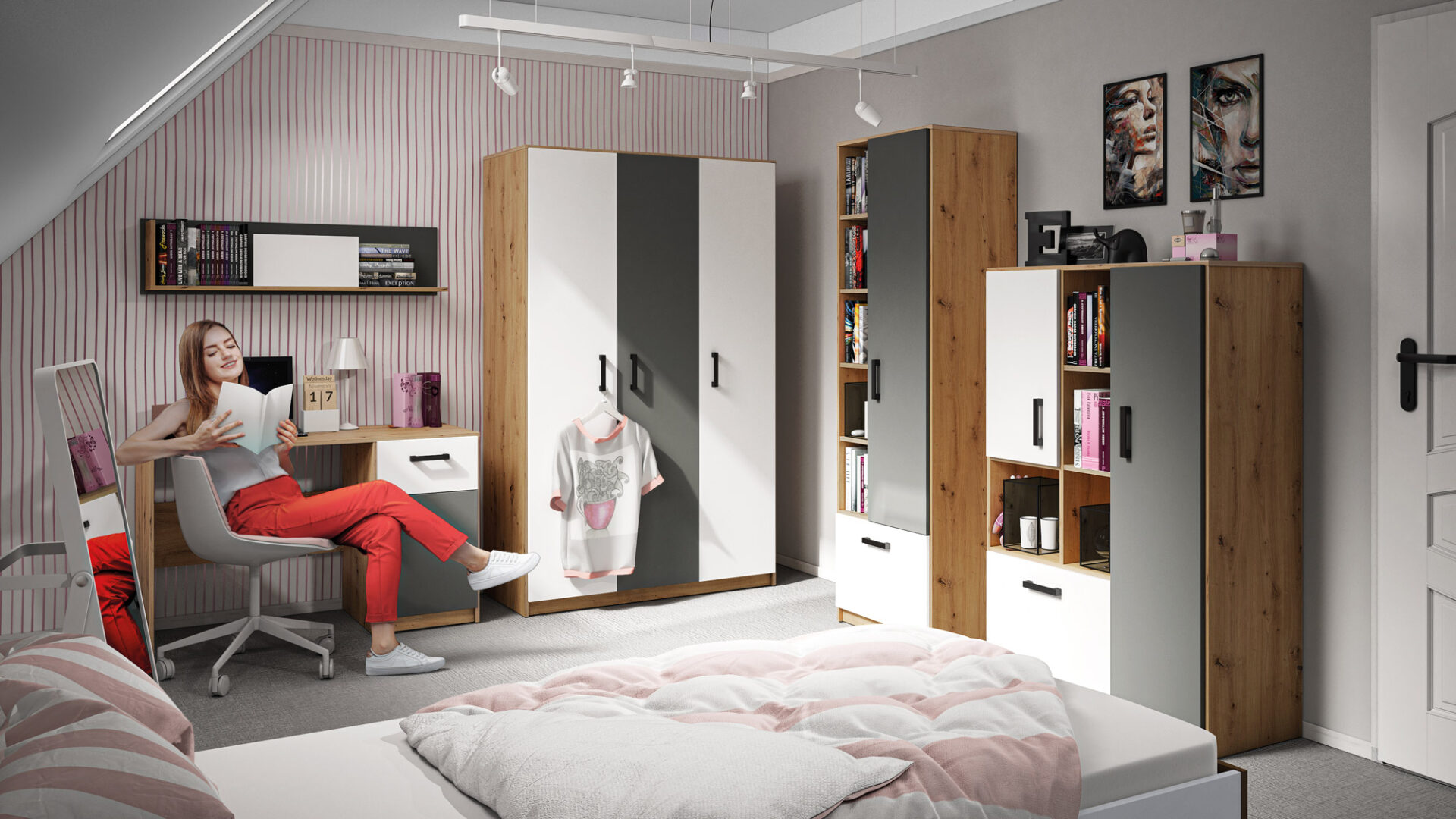 Dėl paprasto dizaino šis baldas ne tik pagerins kambario estetiką, bet ir padės palaikyti tvarką, lengvai sutalpindamas drabužius, knygas, vadovėlius ir daugybę bet kurio paauglio pomėgių aksesuarų.