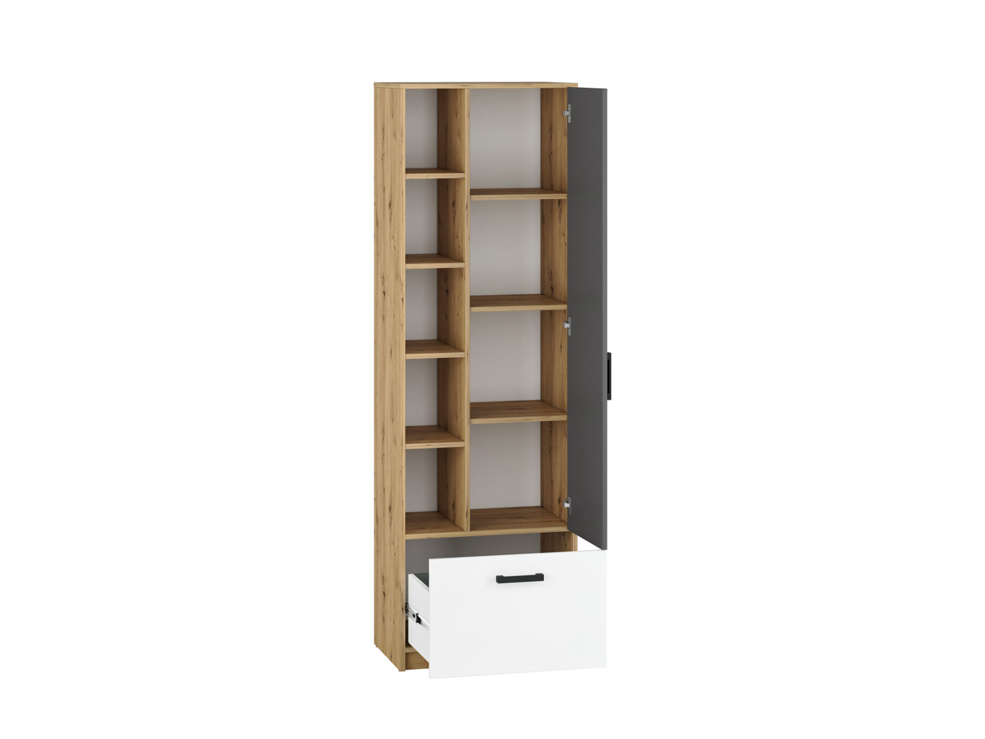 FINI 03 ąžuolo spalvos korpusas / baltas priekis / antracito spalvos įdėklas – lentyna