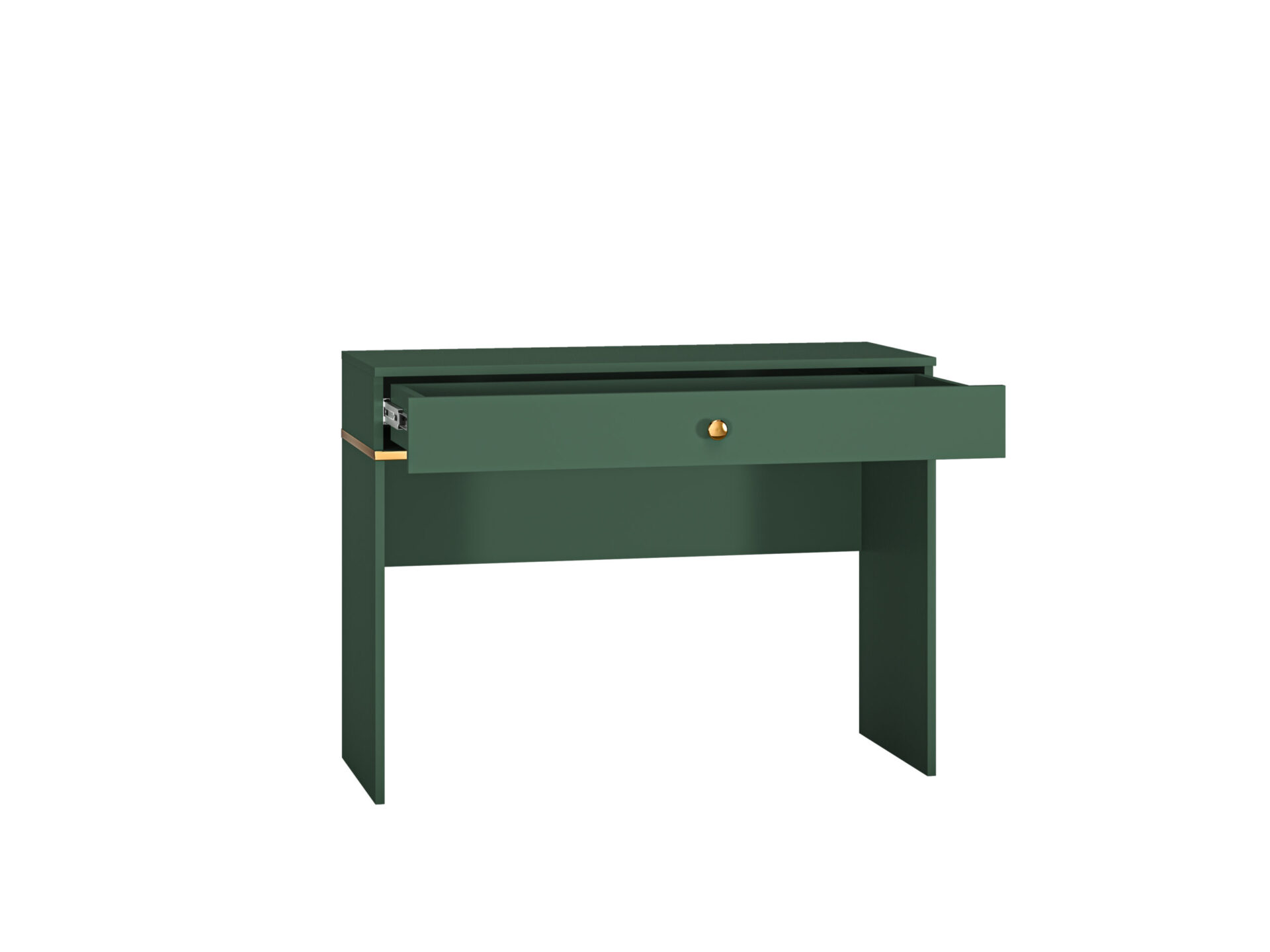 „Forest 09“ tualetinis staliukas puikiai papildys jūsų miegamąjį. Didelis stalviršis leidžia jums pademonstruoti savo kvepalų kolekciją ir laikyti makiažą. Jei pageidaujate minimalistinės tvarkos, visą kosmetiką galite laikyti erdviame stalčiuje, o stalviršis gali tarnauti kaip vieta, pavyzdžiui, vazai su mėgstamomis gėlėmis pasidėti. Visi „Forest“ kolekcijos baldai pasižymi harmoningu žaliu dekoru – „Labrador“. Rankenos ir apatinės plokštės fanera – dėl savo klasikinės auksinės spalvos – pabrėžia elegantišką ir nesenstantį „Forest“ baldų charakterį.