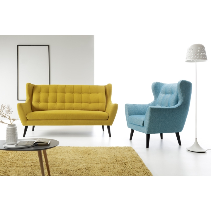 Ypač verta dėmesio dygsniuota nugaros atrama, suteikianti bendram dizainui subtilaus gylio. Aptaki šonų ir porankių forma suteikia baldui lengvumo pojūtį, pabrėžiant jo rafinuotą apdailą. Visas baldas stovi ant medinių kojelių, kurios gali būti venge, sendintos vyšnios, natūralaus buko, natūralaus ąžuolo, riešutmedžio, taip pat sidabrinės arba juodos spalvos.