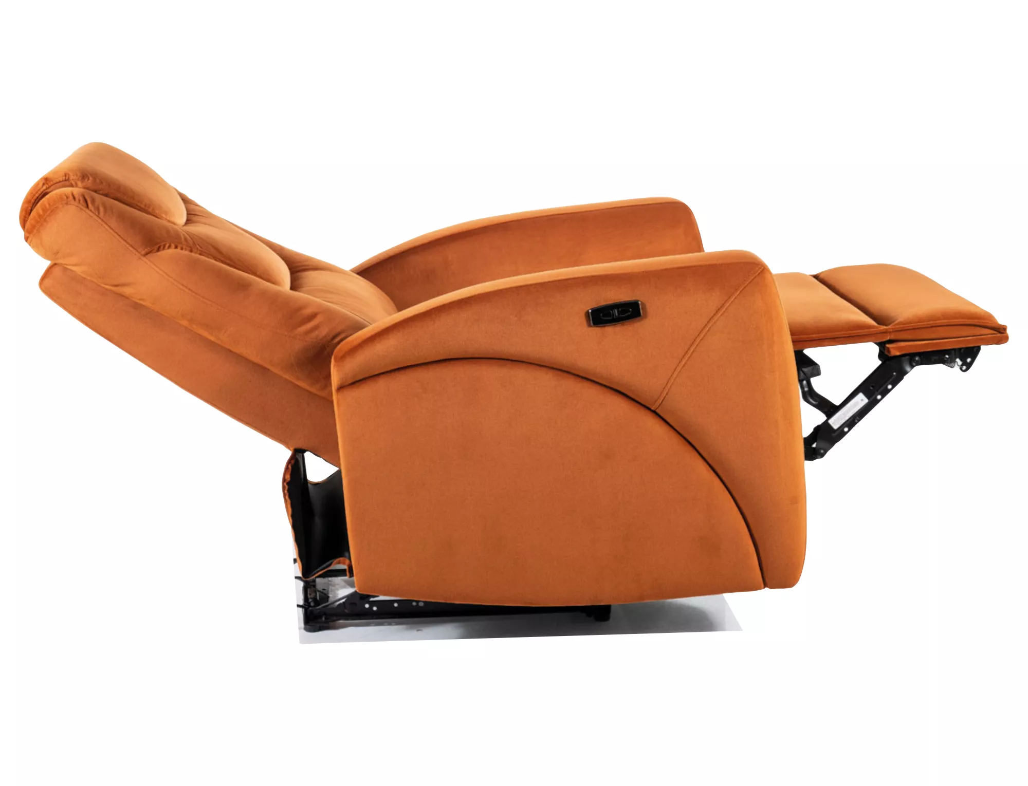 Elektrinis atlošiamas krėslas, „Bluvel 4215“ aksominis audinys, spalva: cinamono. Krėslo matmenys: A – 107, B – 79, C – 49, D – 53, E – 94÷160, F – 5 cm.