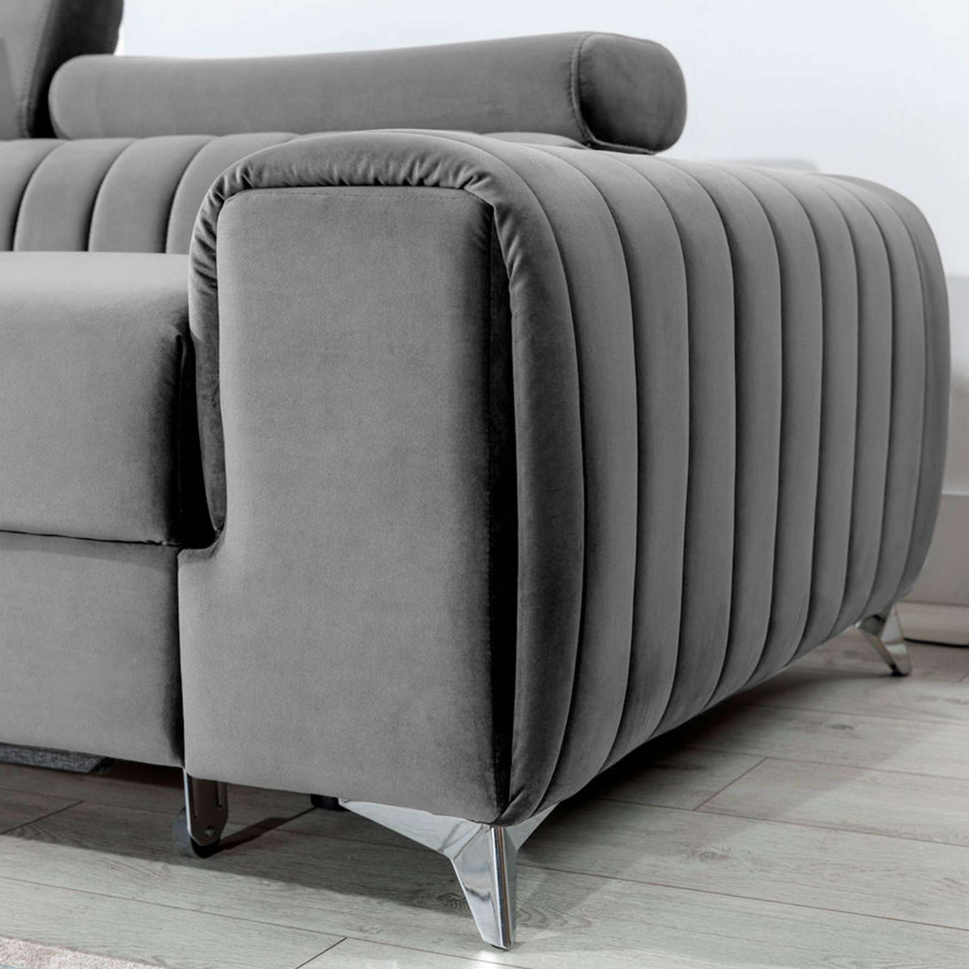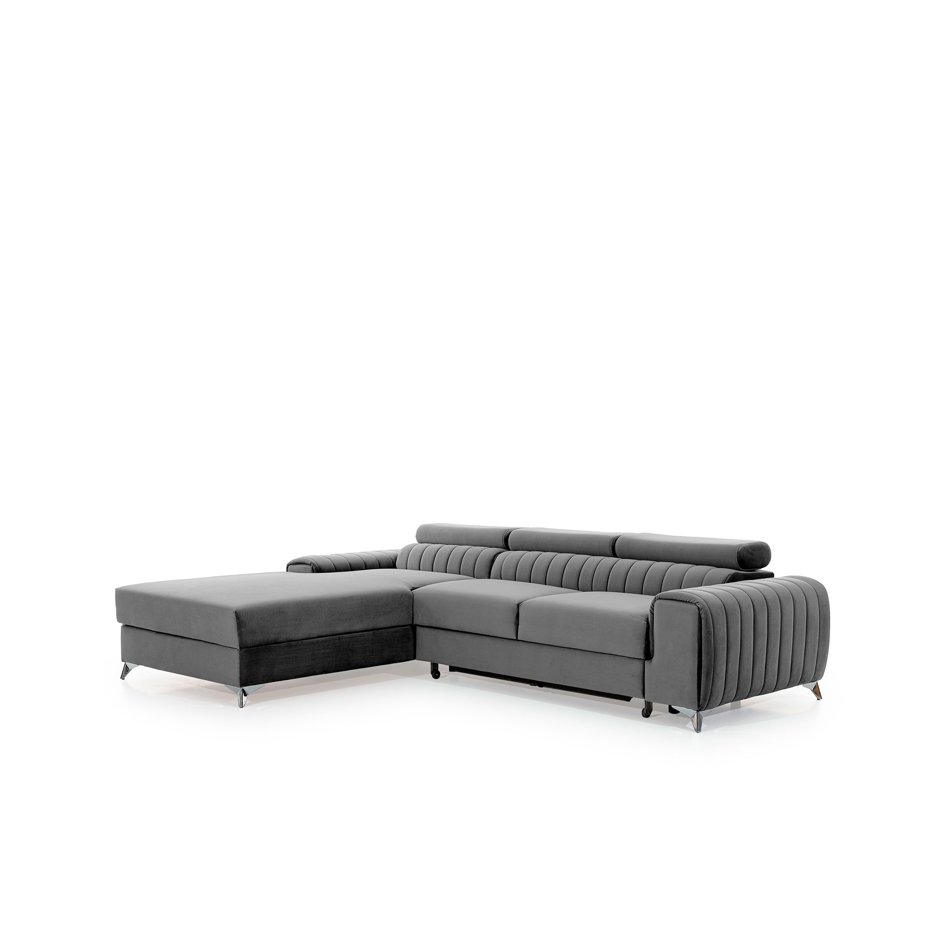 “Grayson” – tai daugiafunkcinė, elegantiška ir erdvi L formos kampinė sofa, kuri gali tapti prabangiu bet kurios svetainės akcentu. Šis aukštos kokybės baldas spinduliuoja komfortu ir klase, iš dalies dėl novatoriško T30+HR putplasčio, kuris padidina sėdynės elastingumą ir atsparumą, taip pat yra atsparus visų tipų deformacijoms. „Grayson“ kampinė sofa, kurios matmenys 275 x 205 x 98 cm, siūlo ne tik komfortą, bet ir gerą miegą dėl didelio 125 x 210 cm miegojimo paviršiaus. „Delfino“ mechanizmas leidžia paprastai ir intuityviai išskleisti kampinę sofą, paverčiant ją erdvia lova. Patogumui joje taip pat yra praktiškas patalynės skyrius, kuris neabejotinai supaprastina namų ruošos darbus. Mūsų „Grayson“ modelis pasižymi unikaliu, moderniu dizainu, yra lankstus, patvarus ir pasižymi didesniu nei vidutinis komfortu, tvirta konstrukcija, reguliuojamomis, judančiomis galvos atramomis ir kontūruota nugara. Jei smalsu, ką dar gali pasiūlyti mūsų „Grayson“ sofa, kviečiame išbandyti šią kampinę sofą. Tai tikrai bus puikus pasirinkimas.