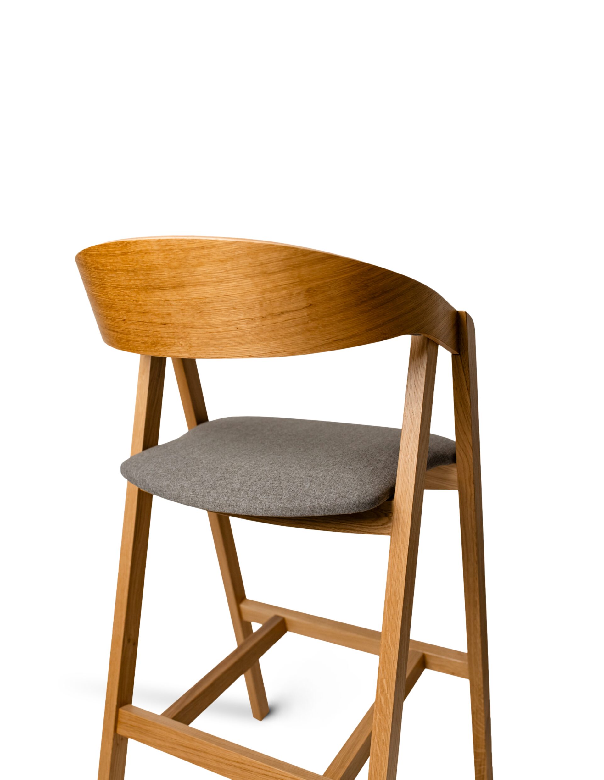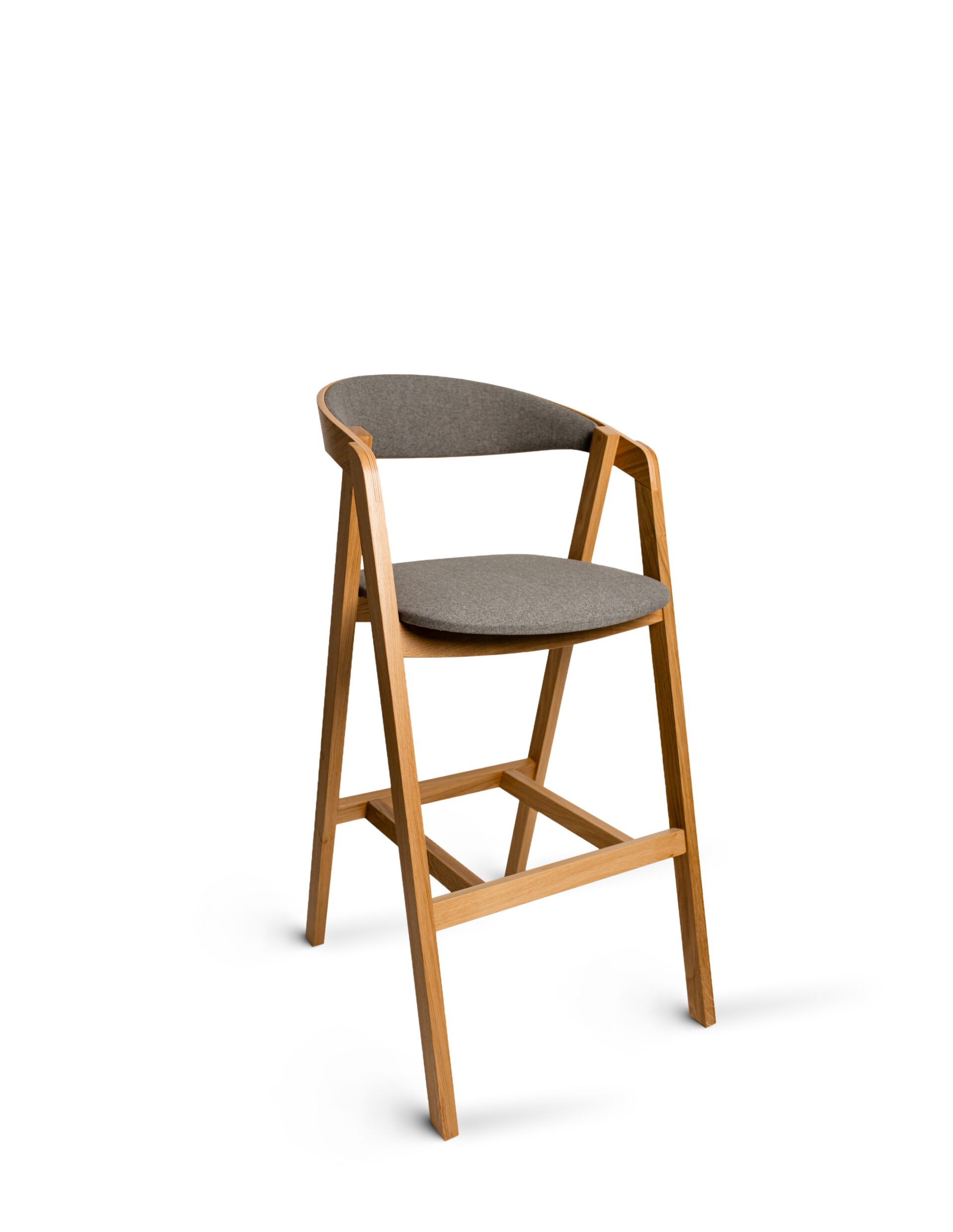 Tvirtos ąžuolo medienos konstrukcija garantuoja didelį patvarumą ir stabilumą, o tikslūs sujungimai ir šiek tiek platėjančios kojelės padidina atsparumą svyravimams, būdingiems aukštoms kėdėms. Natūrali ąžuolo tekstūra, paryškinta aliejumi arba laku, suteikia taburetei elegantišką, nesenstantį charakterį ir lengvai integruojasi į skandinaviško, japoniško, modernaus ir lofto stiliaus interjerus.