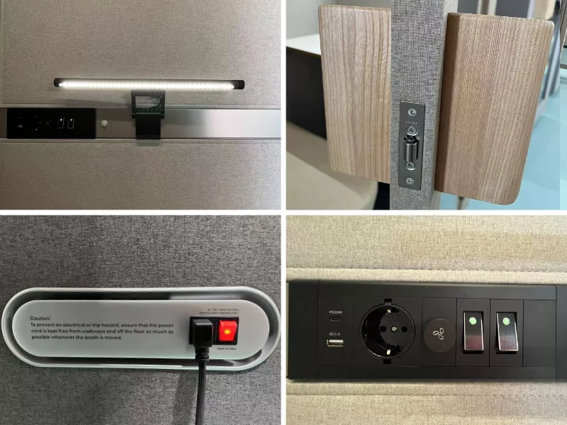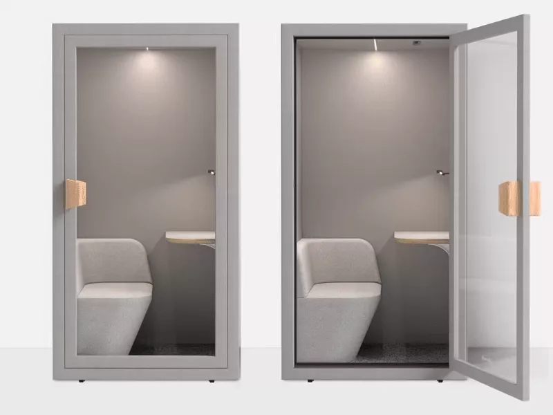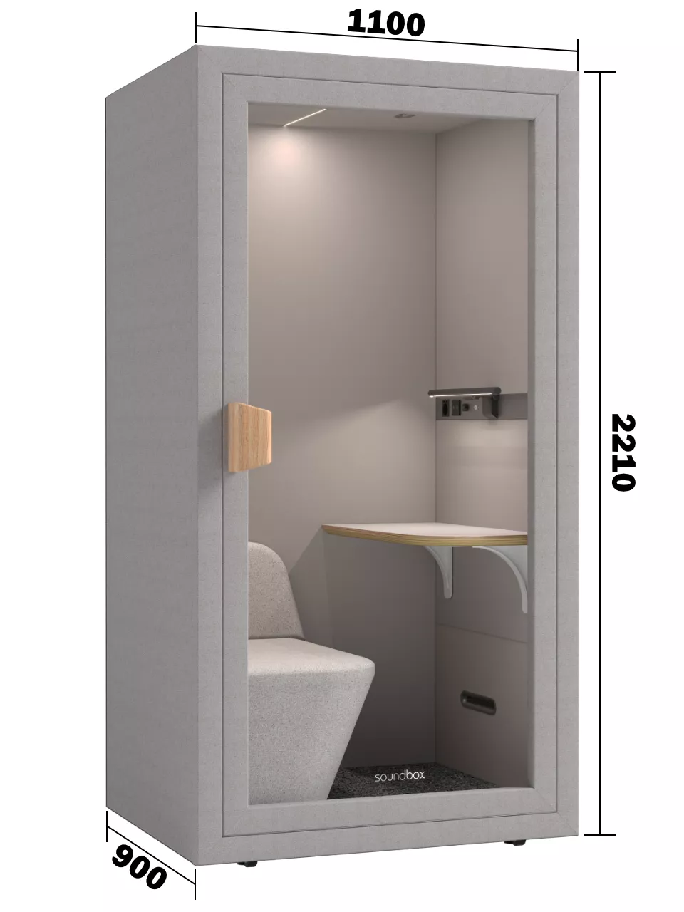 Patogi, vieno asmens akustinė kabina biurui ir namams. Ši moderni, garsą slopinanti akustinė kabina yra būtinas daiktas moderniuose atviro plano biuruose, vyriausybinėse įstaigose, oro uostuose, viešbučiuose ir net namuose. Kabinetas leidžia vesti telefono skambučius ar telekonferencijas patogioje aplinkoje, kur galite sutelkti dėmesį į pokalbį ir vesti jį netrukdydami kolegoms ar šeimos nariams. Stiklinės durys suteikia kabinai šviesumo ir pagerina erdvės interjerą. Ši maža, praktiška telefono kabina puikiai tiks moderniame, novatoriškame biure ar namuose kaip patogi vieta darbui internetu, mokymuisi ar telefono skambučiams. Kabinetas pagamintas iš aukštos kokybės medžiagų, kurios užtikrina tinkamą garso izoliaciją. Interjero dizainas ir apdaila skatina jus naudotis šia patogia vieta, kai tik prireikia. Papildomi produkto privalumai: reguliuojamas, praktiškas stalas – kompiuteriniams įrenginiams ar biuro reikmenims, reikalingiems naudojantis kabina. 3,5 W apšvietimas. 170LM 4000K, akis apsaugantis skaitymo apšvietimas virš stalviršio 5W, 160LM, 3000K-6500K Reguliuojama gryno oro sistema, ventiliatorius su oro mainų greičiu 600-1500 aps./min., vėdinimo efektyvumas 30m³/h Ergonomiška patogi sofa Integruotas USB 2.0 maitinimo šaltinis 220V maitinimo šaltinis Paslėpti nuimami ratukai, kurie daro kabiną mobilią ir praktišką. Garso izoliacija ir triukšmo mažinimas maždaug 25 dB ± 5 dB. Kabina netrukdo „Wi-Fi“ tinklams ir kitiems duomenų perdavimo signalams. Medžiaga: Garsą sugerianti plokštė, pagaminta iš anglies plastiko, PET akustinė plokštė, poliesterio pluošto akustinis audinys, aliuminio profilis, nerūdijantis plienas, ABS inžinerinis plastikas Spalva: Debesis Išoriniai matmenys: aukštis: 210 cm Plotis: 110 cm Gylis: 90 cm Vidiniai matmenys: aukštis: 196 cm Plotis: 100 cm Gylis: 80 cm Garso izoliacija: 25dB pliusmn; 5 dB Maitinimo šaltinis: 100–240 V / 50–60 Hz