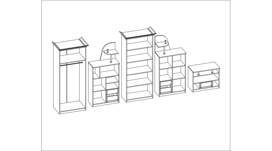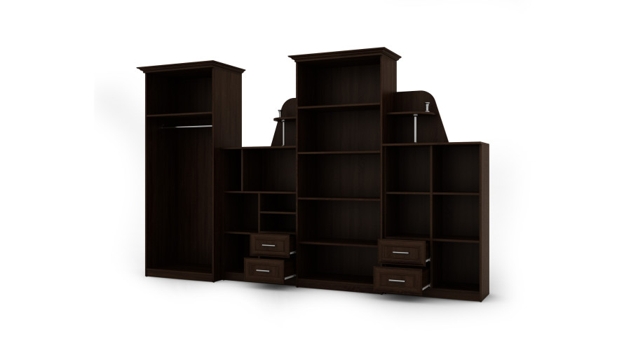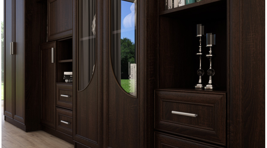 Svarbiausias šio varianto elementas – erdvi viso dydžio spinta su pakaba ir lentyna. Tai leidžia sieninei spintelei tarnauti kaip pagrindinei drabužių ir tekstilės gaminių saugyklai, sumažinant papildomų spintų poreikį. Sieninėje spintelėje taip pat yra patalynės spinta mažesniems drabužių spintos daiktams laikyti ir baras, kuris palengvina stiklinių ir aksesuarų organizavimą. Užrakinami moduliai padeda palaikyti tvarką, išlaikant vientisą, klasikinį viso komplekto charakterį.