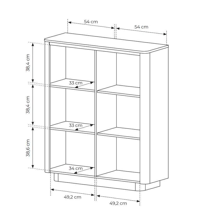 Korpusas: E05 laminuota medžio drožlių plokštė, 16 mm storio + apvalios MDF juostelės šonuose