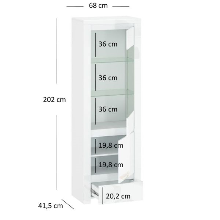 Ši vitrina – tai daugiafunkcis baldas, galintis tapti patogia knygų lentyna, įdomių dekoracijų vieta ar biuro dokumentų saugykla. Vitrinos puikiai dera prie tokių kambarių kaip svetainė, darbo kambarys, prieškambaris, miegamasis, darbo kambarys, namų biuras, jaunimo kambarys ir net valgomasis! LINGO kolekcijos vitrina turi papildomą stalčių. LINGO baldų kolekcija patenkins kiekvieną, kuris vertina nepriekaištingą paprastumą modernioje aplinkoje. Klasikinė kolekcijos forma, universali balta spalva, siūlo platų baldų pasirinkimo pasirinkimą beveik bet kuriam jūsų namų kambariui.