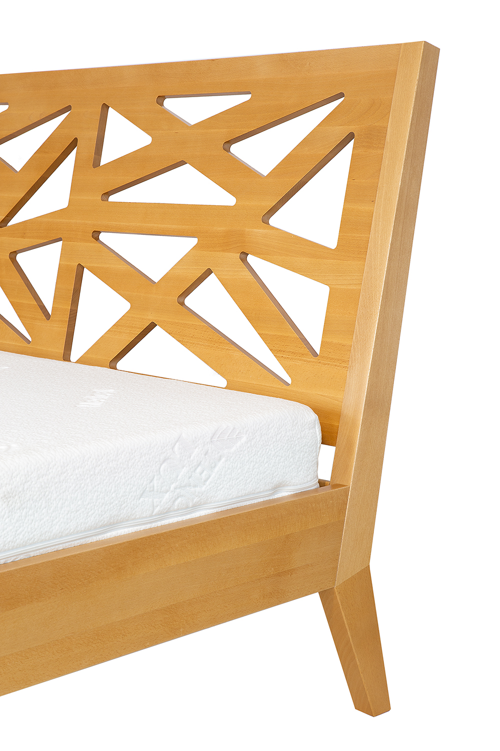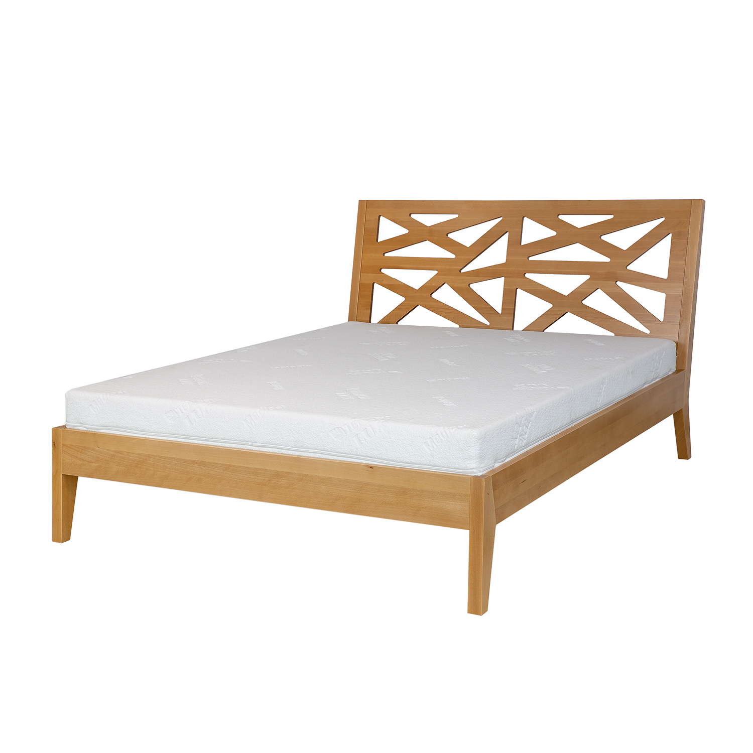 Labai moderni ir unikali LK164 lova, pagaminta iš tvirtos buko medienos. Ažūrinis, lenktas galvūgalis, besitęsiantis virš lovos rėmo, atlieka ne tik dekoratyvinę funkciją, bet ir yra praktiškas. Unikalus dizainas išsiskirs iš tradicinių galvūgalių ir sustiprins individualų kambario charakterį. Išlenktos kojelės ties galvūgaliu ir mažos, dekoratyvinės priekinės kojelės suteikia visai konstrukcijai lengvumo ir pabrėžia jos unikalų charakterį. Kartu LK164 lova gali tapti bet kurio miegamojo centriniu elementu.