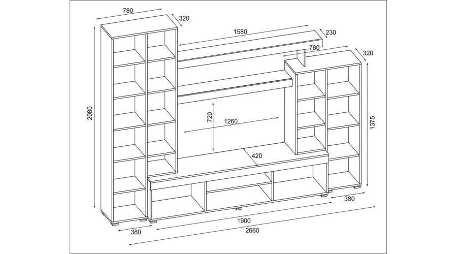 Kompaktiška APOLLO sieninė spintelė, kurios matmenys – 266 x 210 cm, puikiai tinka patalpoms, kuriose svarbiausia funkcionalumas, bet erdvės neužgriozdinimas. Komplektas buvo sukurtas kaip maža sieninė spintelė, kuri sutvarko gyvenamąją erdvę ir suteikia vizualiai lengvumo pojūtį.