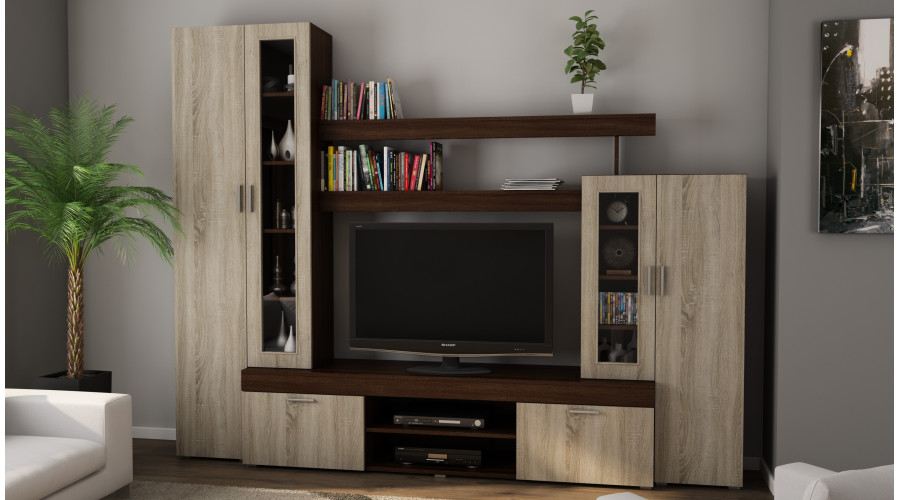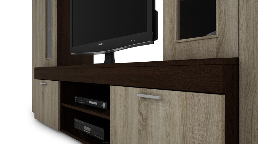 Centrinė komplekto dalis suprojektuota kaip televizoriaus staliukas su vieta multimedijos įrangai. Toks išdėstymas leidžia patogiai naudotis multimedijos dalimi neužgožiant kitų įrenginio elementų.