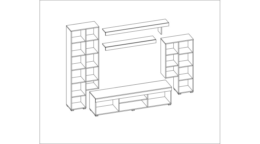 APOLLO modelis, kurio matmenys – 266 x 210 cm, buvo sukurtas kaip maža sieninė spintelė, padedanti sutvarkyti svetainę, neatrodant netvarkingai. Šis komplektas puikiai tinka patalpoms, kuriose svarbiausia lengvumas, funkcionalumas ir aiškus baldų išdėstymas.