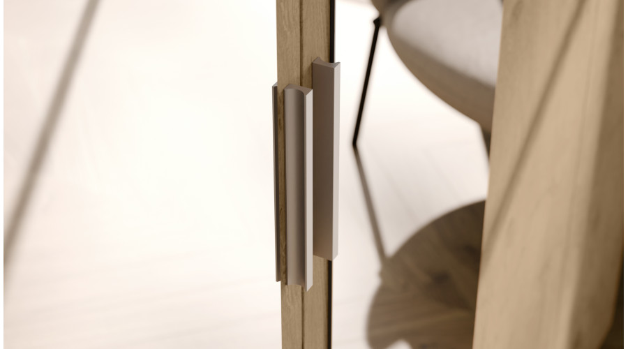 Komplektą sudaro 100 “H” dydžio spinta, 90 “F” dydžio spinta su veidrodžiais ir 80 “P” dydžio spinta. Toks išdėstymas sukuria darnų, erdvų ir pilnai funkcionalų vienetą, atitinkantį įvairius naudotojų poreikius. Modulinis dizainas leidžia lengvai pritaikyti jį bet kokiam kambariui ir jį dar labiau išplėsti MAX sistemos viduje.