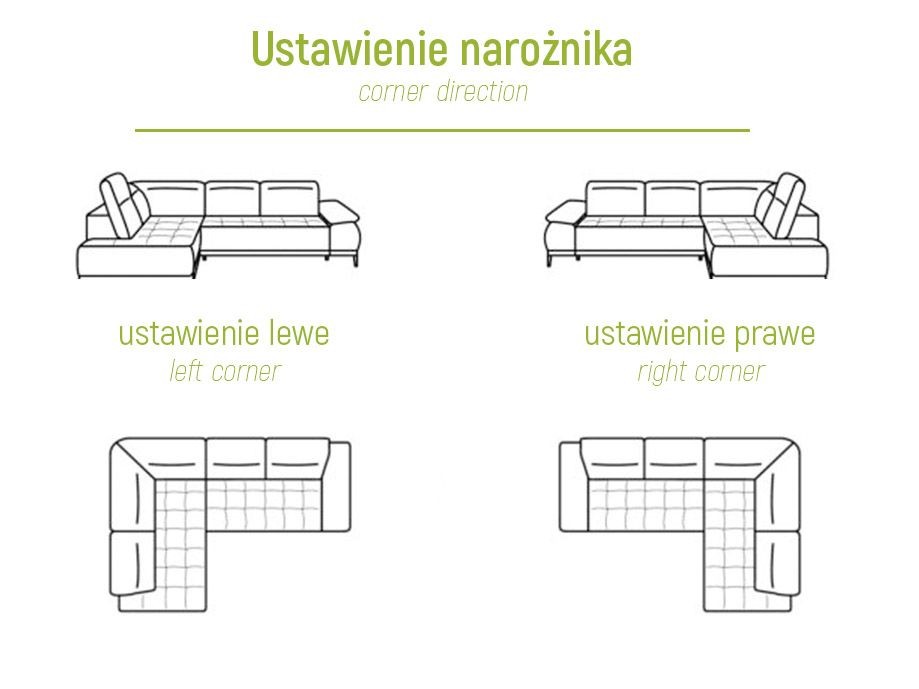 Pagrindinėje nuotraukoje pavaizduota dešinioji kampinė sofa