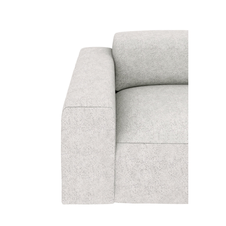 Kampinės sofos pagrindas remiasi į plastikinius bėgelius, kurie užtikrina stabilumą ir apsaugo grindis nuo įbrėžimų. Šio tipo kojelės sustiprina modernų modelio charakterį ir leidžia lengvai jį perkelti prireikus. Dizainas buvo kruopščiai sukurtas siekiant išlaikyti vizualinį vientisumą visoje kolekcijoje.