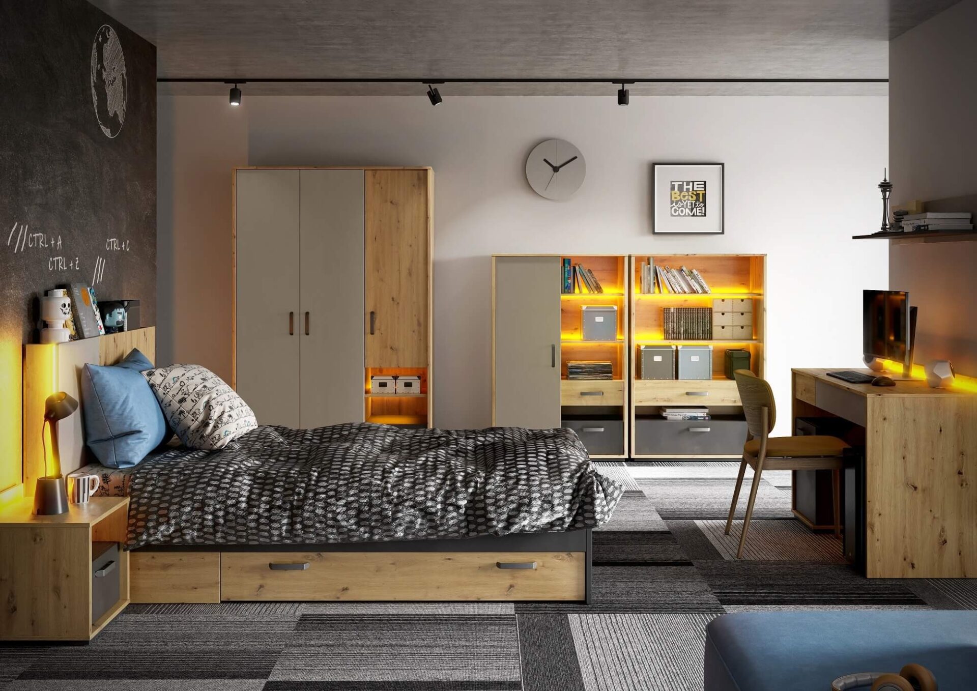 QUBIC QB-09 lentyna, ąžuolo imitacija, šilko spalvos, grietinėlės imitacija, neapdorotas plienas