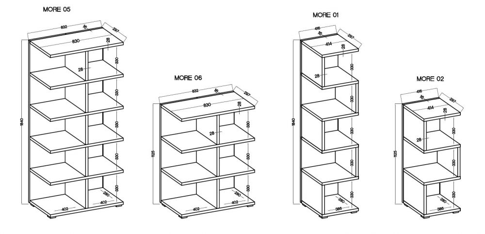 Laisvai pastatoma lentyna „More 01“ puikiai tiks svetainei ar paauglio kambariui. Daugybė lentynų leis tvarkingai susidėti daiktus ir parodyti mėgstamiausius.
