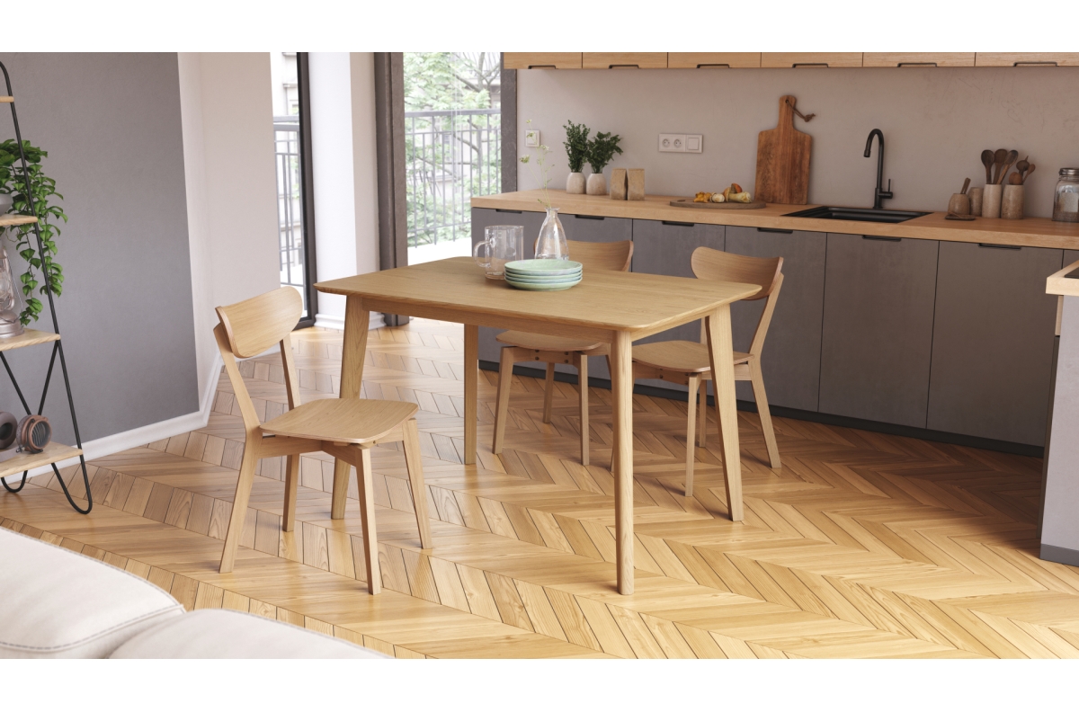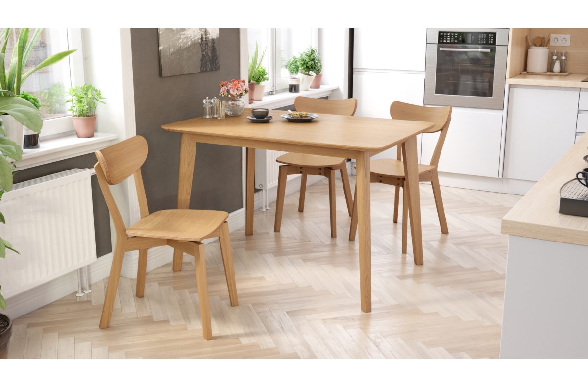 ROXY natūralaus ąžuolo spalvos – stačiakampis medinis stalas 120 arba 150 cm retro stiliaus virtuvei / valgomajam
