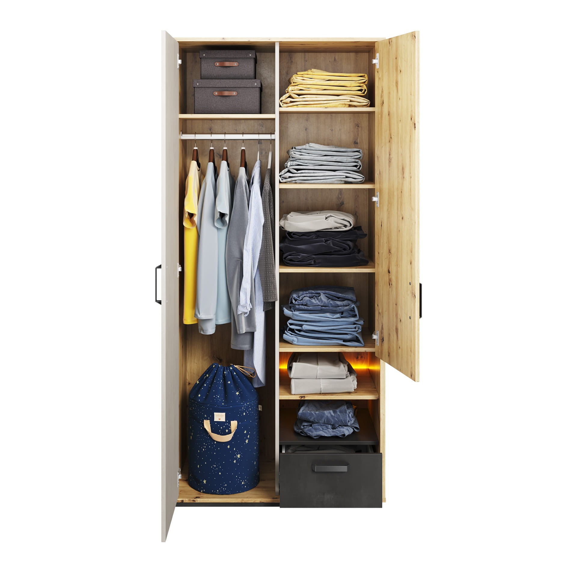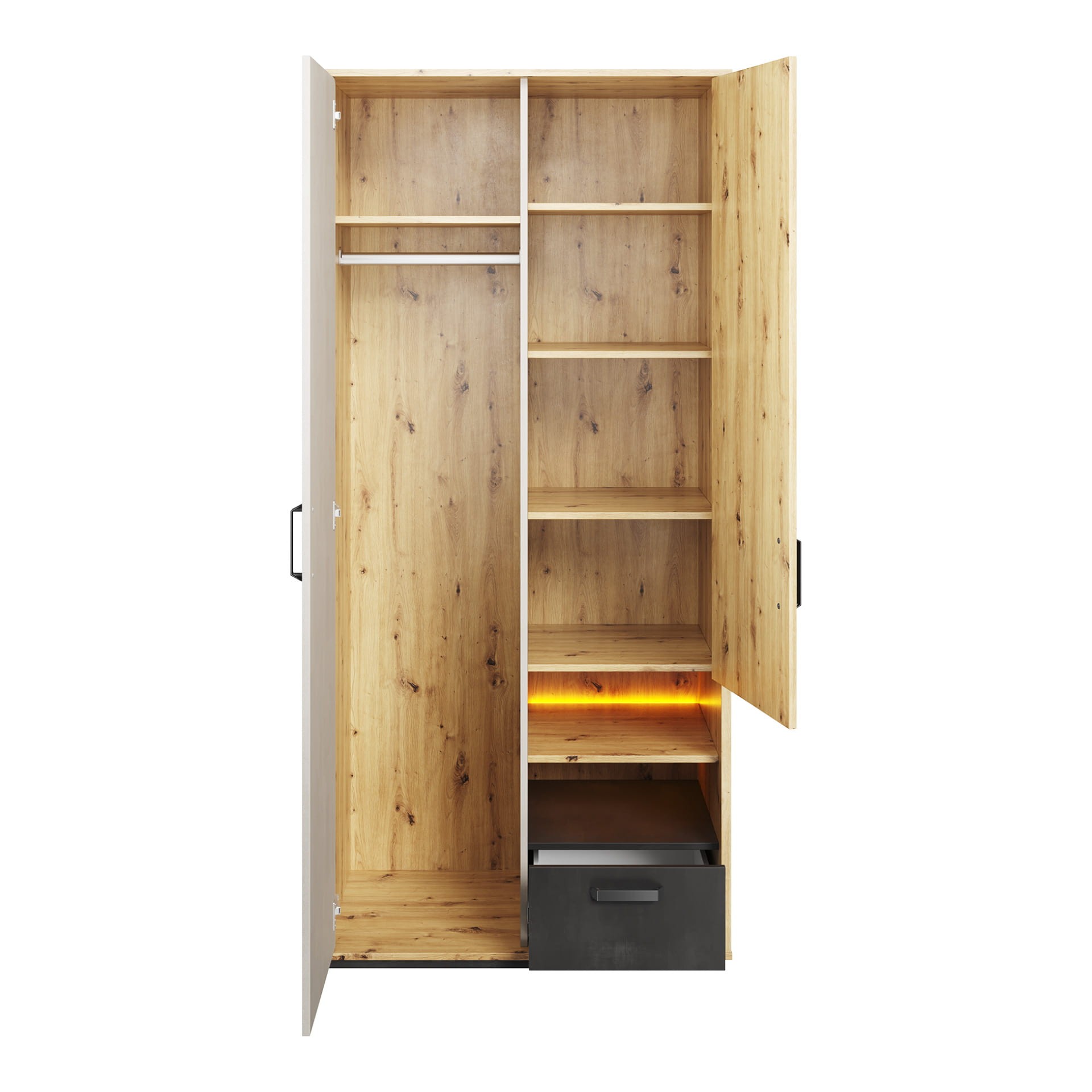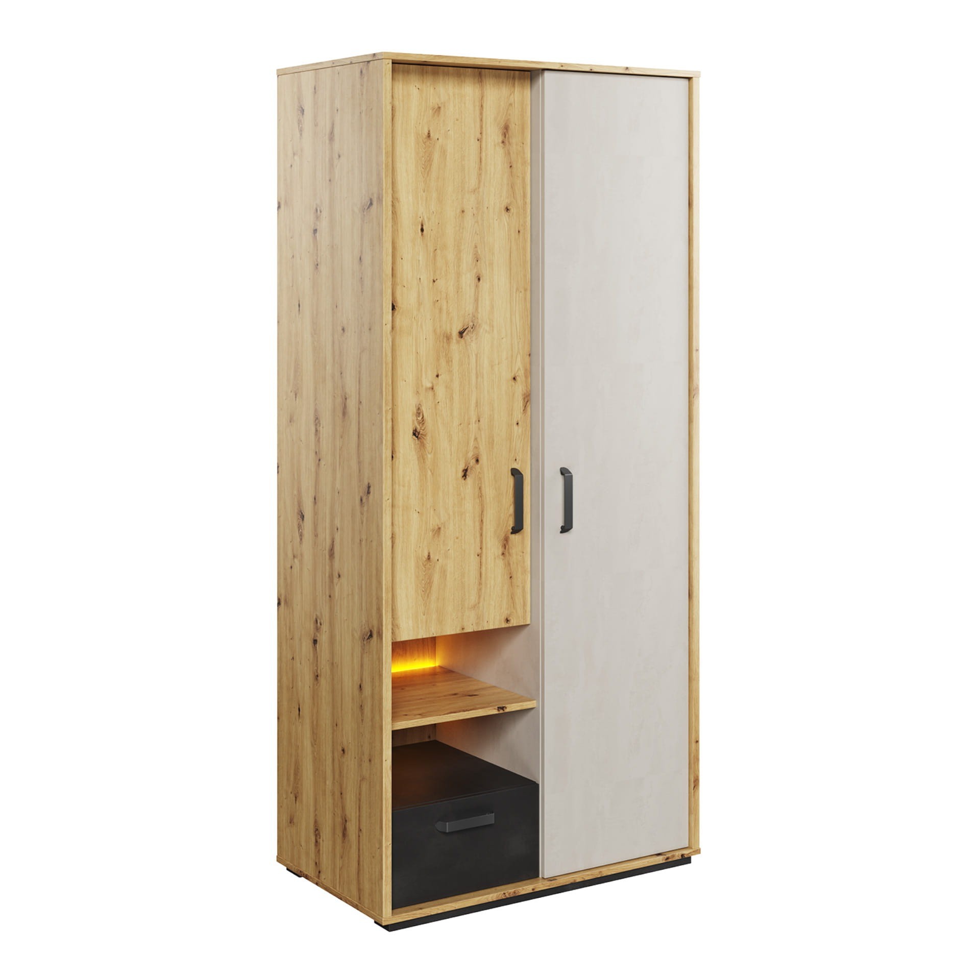 Būkite pirmas aprašęs “QUBIC QB-03 spinta, dirbtinio ąžuolo/šilko pilkumo/neapdoroto plieno”