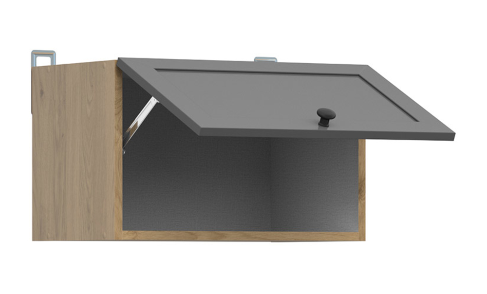 50 cm viršutinis gartraukis yra sumanus virtuvės organizavimo sprendimas. Jo vieta virš viryklės suteikia puikią daiktų laikymo vietą. Jį galite naudoti vaistams, namų medicinos įrangai ar kitiems priedams laikyti. Jis taip pat yra ideali vieta indams, stiklinėms, puodeliams ar puodeliams laikyti. 50 x 30 cm viršutinis gartraukis puikiai papildo viryklę arba tokio pat pločio apatinę spintelę. Jo priekis pakreipiamas į viršų, todėl lengva pasiekti jo turinį. „Junona Line“ kolekcija pasižymi prislopinto ąžuolo spalvos korpusu, kuris puikiai dera su grafito spalvos rėmu. Moderni juoda rankena užbaigia išvaizdą. Naudodami „Junona Line“ kolekcijos baldus, galite susikurti virtuvę, kuri atitiktų jūsų lūkesčius ir užtikrintų praktišką erdvės padalijimą. „Junona Line“ modulinė virtuvės sistema siūlo daugybę variantų, leidžiančių pritaikyti virtuvę pagal savo poreikius ir pageidavimus.