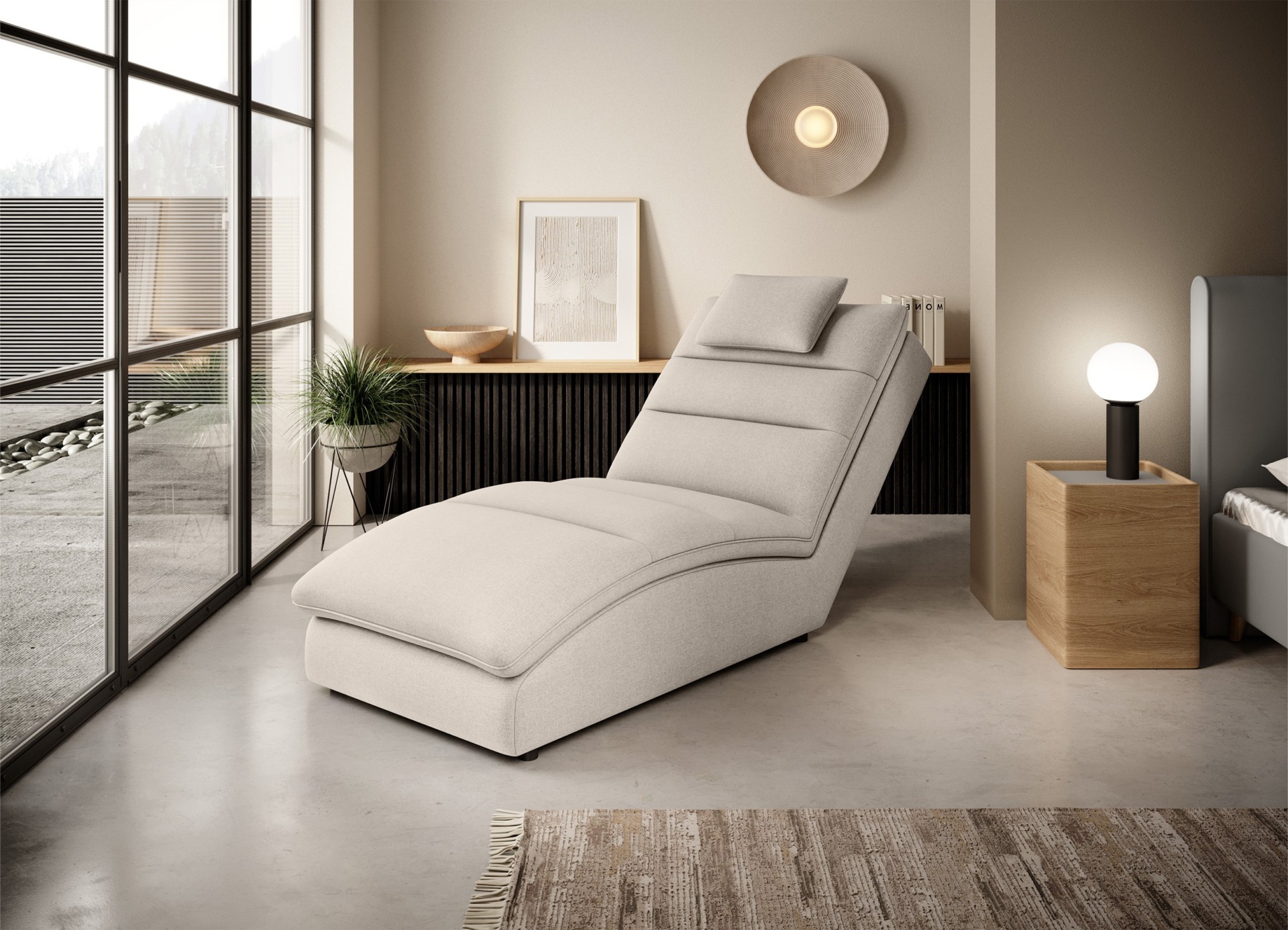 „BalduMarket“ „Taco“ šezlongas puikiai tiks bet kuriame svetainėje, miegamajame ar biure. Jo gražus apmušalas puoštas horizontaliomis siūlėmis, kurios suteikia visam baldui charakterio ir pabrėžia šiuolaikišką, minimalistinį dizainą. Papildoma galvos atrama suteikia dar daugiau komforto ilsintis ant „Taco“ šezlongo. „Taco“ patogumą daugiausia lemia labai elastingų HR putų užpildas. Be didelio elastingumo ir tinkamos kūno atramos, HR putos taip pat pailgina baldo tarnavimo laiką. Šis 85 x 170 x 95 cm šezlongas pasižymi elegantiškai išlenkta atlošu. Tai leidžia patogiai atsiremti ir atsipalaiduoti, o bet kokiam interjerui suteikia stulbinantį, prabangų vaizdą.