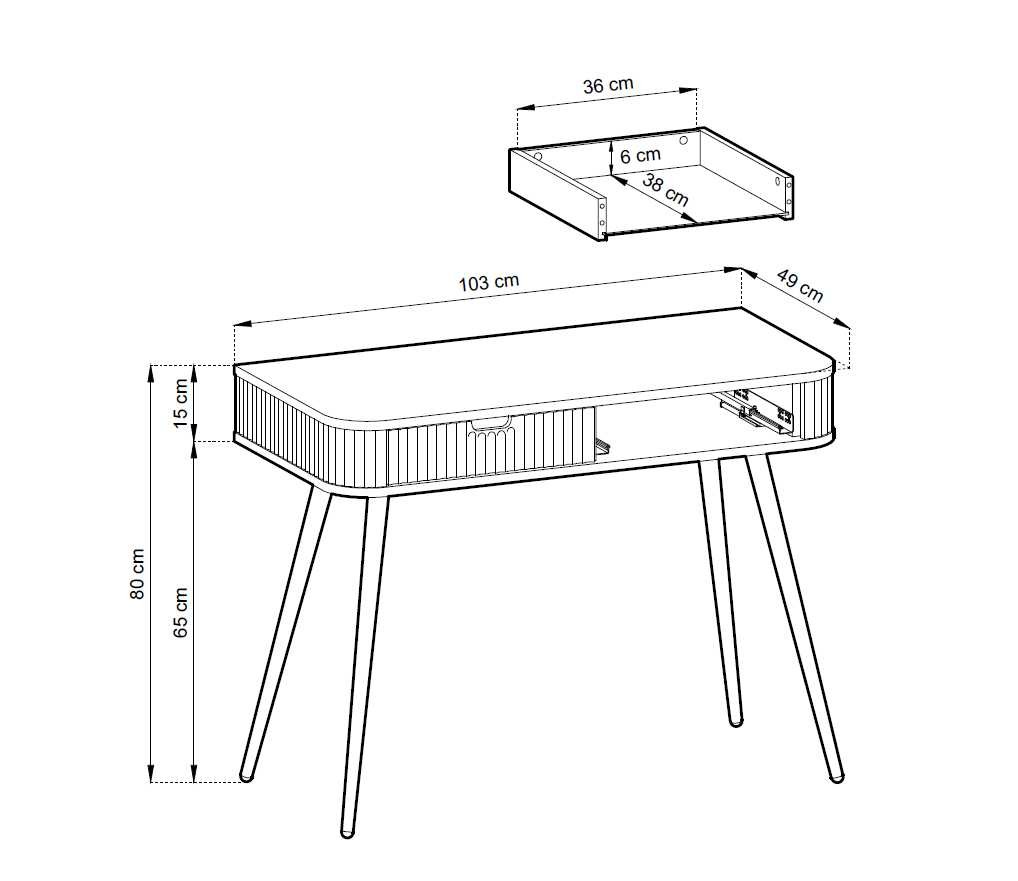 Juodas „Zova T-103“ tualetinis staliukas – su tvirtu stalviršiu ir dviem stalčiais.