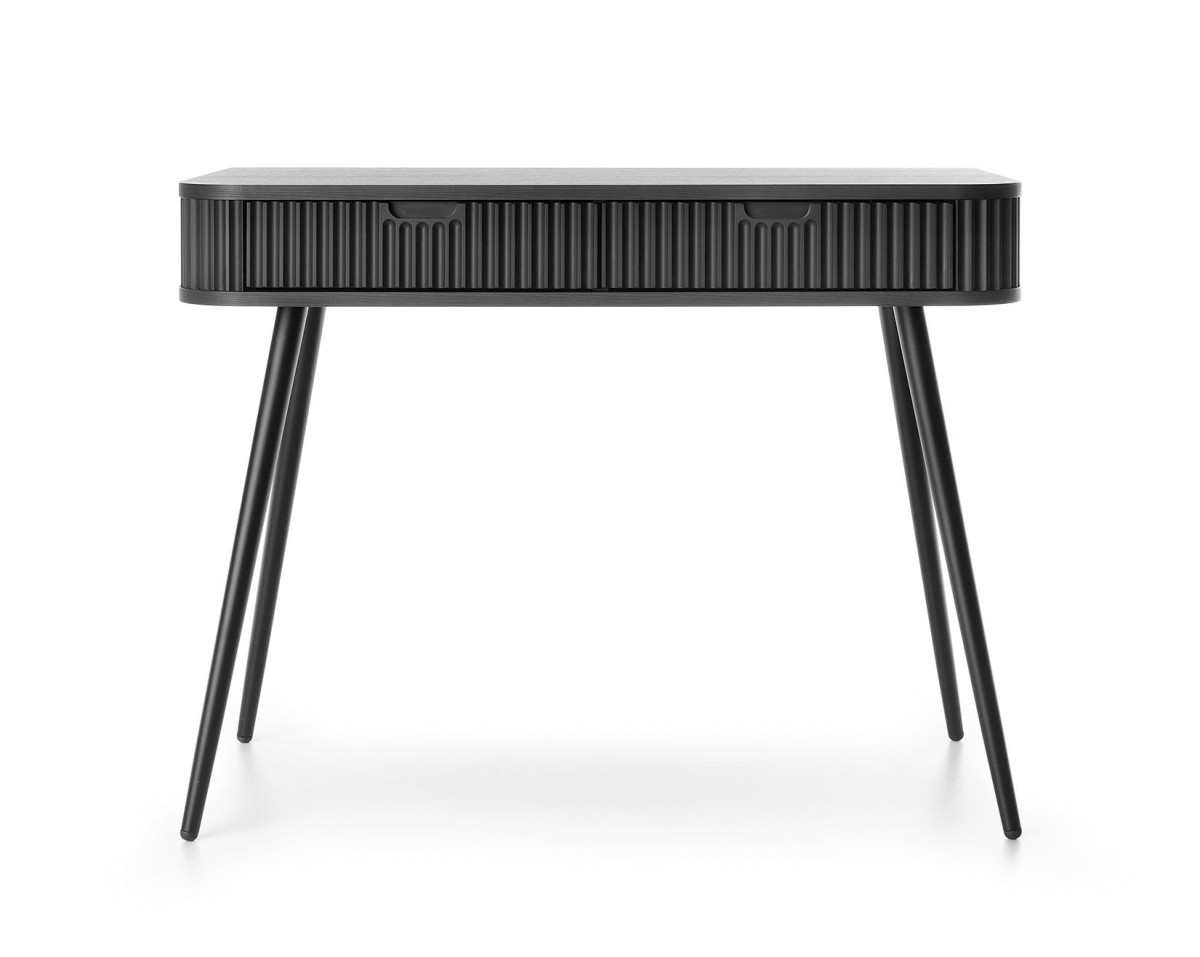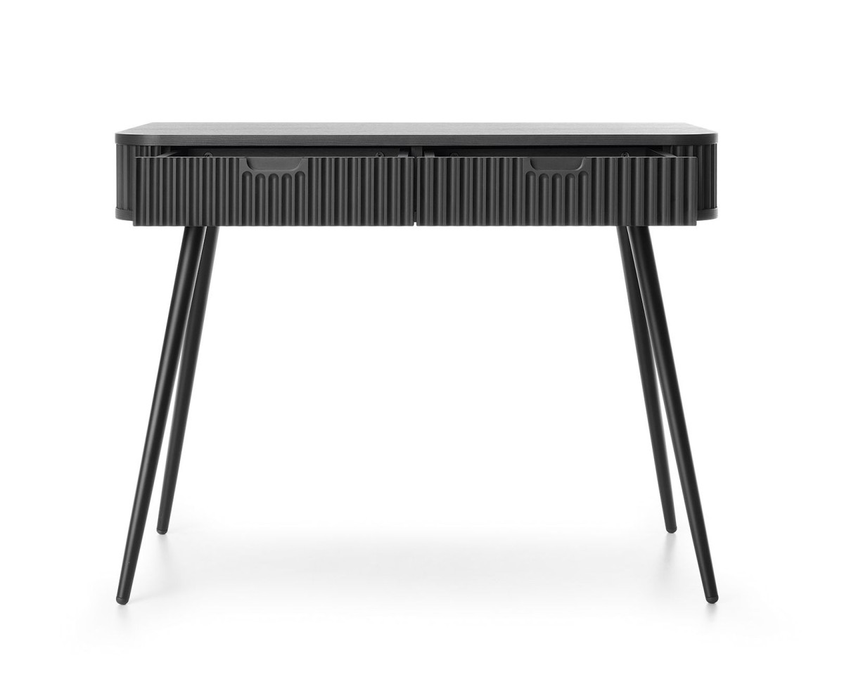 „Zova T-103“ juodas frezuotas konsolinis tualetinis staliukas su stalčiais