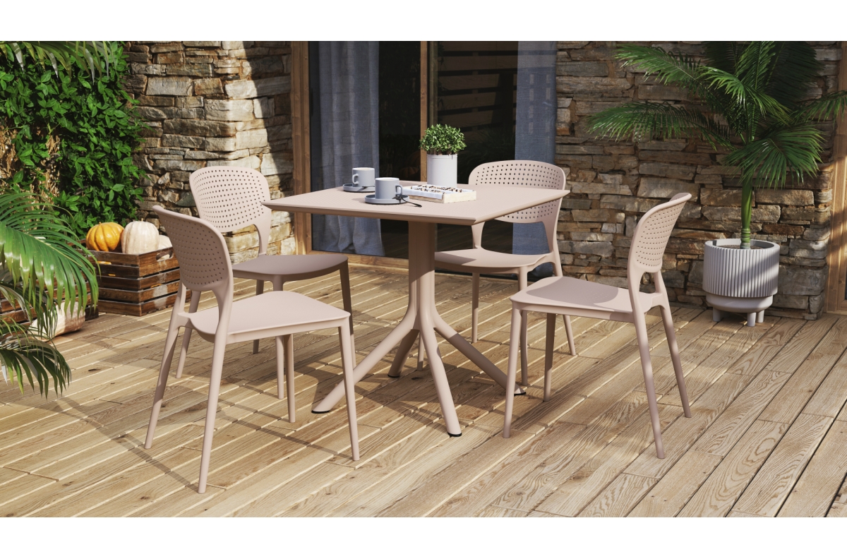TODO Beige – MODERNI PLASTIKINĖ SODO KĖDĖ (virtuvėje, kavinėje, sode) [SUDEDAMA VIENĄ KARTĄ]