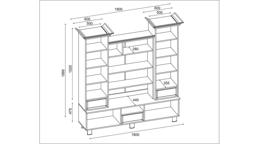 Stiklinė dalis leidžia eksponuoti dekoracijas, stiklinius indus ar kolekcijas, o lentynos suteikia vietos knygoms ir daiktams, kuriems reikalinga nuolatinė prieiga. Baras suteikia atskirą, uždarą erdvę stalo įrankiams ar aksesuarams, kurie neturėtų būti matomi kasdien. Toks suskirstymas padidina išdėstymo aiškumą ir sutvarko turinį.