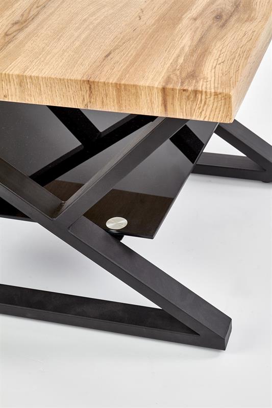 Matmenys: 60/60/45 cm, medžiaga: laminuota MDF / stiklas / milteliniu būdu dažytas plienas, spalva: natūralus ąžuolas / juoda