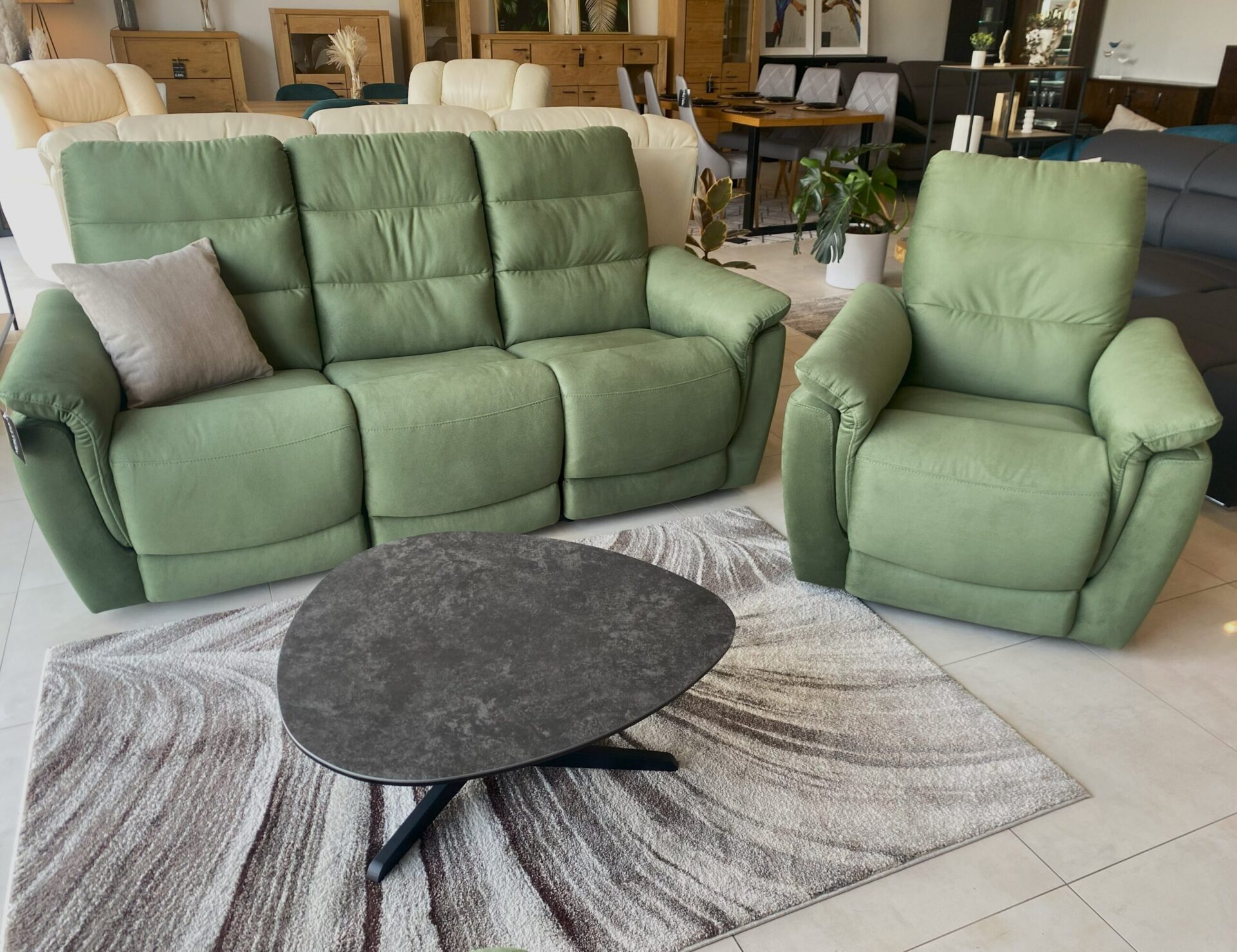 Aukščiausios kokybės, modernus „Alex“ sofas sujungia kokybę ir komfortą. Jis turi patogias atsipalaidavimo funkcijas, puikiai tinkančias atsipalaiduoti po ilgos dienos. Specifikacijos: - „Bonnell“ spyruoklė, - silikoninis rutulys, - atsipalaidavimo funkcija trivietėje sofoje, - atsipalaidavimo, supimo ir pasukimo funkcijos su supimo fiksatoriumi sėdynėse.