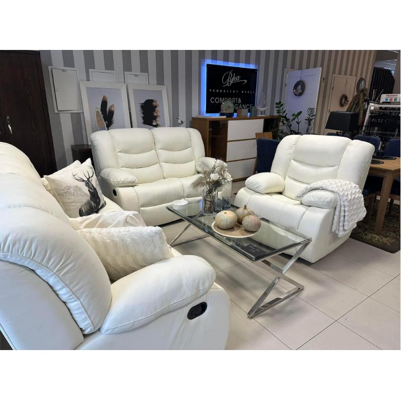 Aukščiausios kokybės, modernus „Regan“ komplektas sujungia kokybę ir komfortą. Jis turi patogias atsipalaidavimo funkcijas, puikiai tinkančias atsipalaiduoti po ilgos dienos. Specifikacijos: - „Bonnell“ spyruoklės, - Didelio elastingumo putplastis, - Fotelis su atsipalaidavimo, pasukimo ir supimo funkcijomis, - Atsipalaidavimo funkcija trivietėje ir dvivietėje sofose.