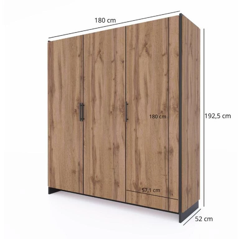 Коллекция: AMINO Мебель в собранном виде: Нет Ширина: 180 см Высота: 192,5 см Глубина: 52 см Шкаф AMINO 3D – Дуб Вотан / Черный