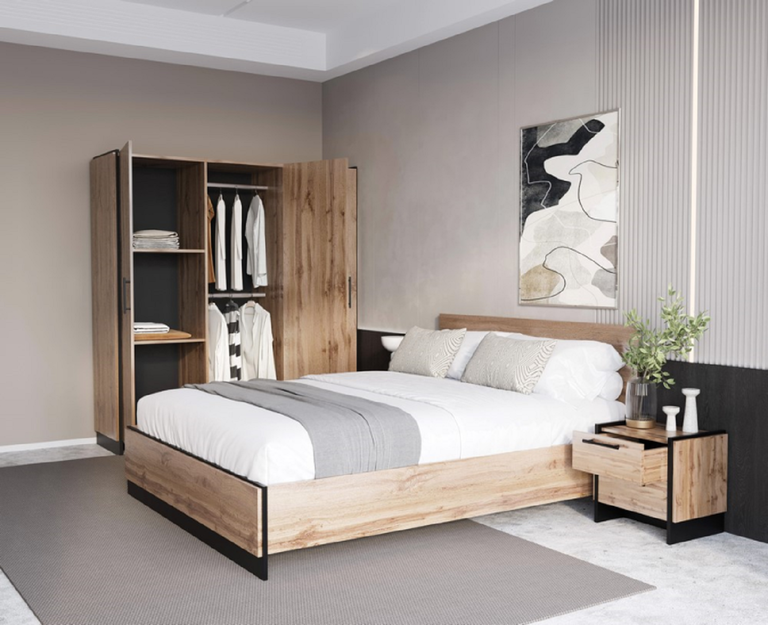 Элегантный дизайн – натуральный декор из дуба Вотан в сочетании с черными элементами создает современную, но в то же время уютную композицию.