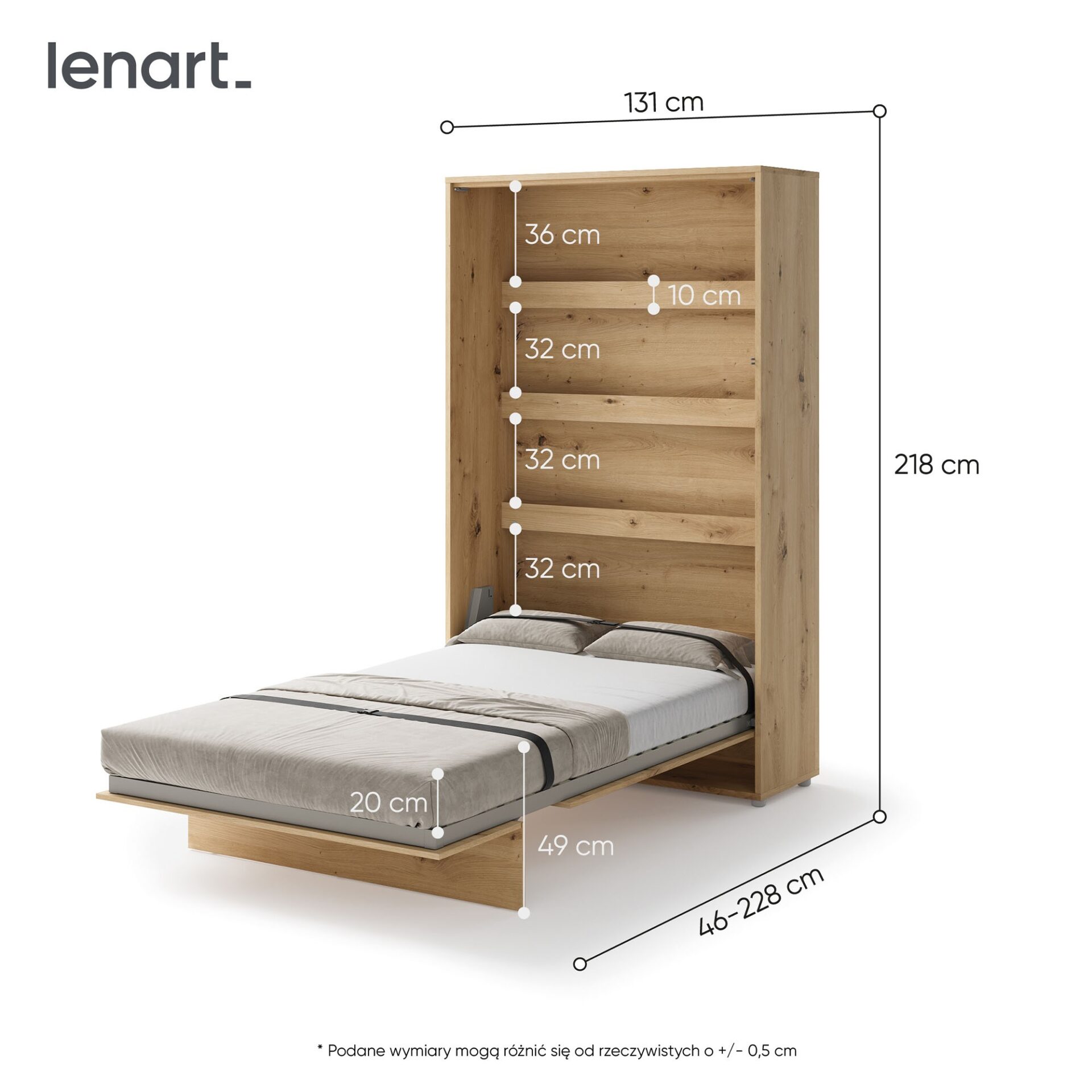 Кровать Lenart BED CONCEPT BC-02 — это современная и практичная кровать высотой 120 см в цвете «Дуб ручной работы», позволяющая максимально эффективно использовать пространство вашей квартиры. Она может за считанные секунды превратить гостиную, комнату подростка или студию в уютную спальню. Компания Lenart разработала эту модель, сочетая функциональность, комфорт и безопасность с элегантным внешним видом, который дополнит различные интерьеры. Кровать BC-02 идеально подходит в качестве широкой кровати для одного человека, ребенка постарше или подростка. Она оснащена практичными внутренними полками, идеально подходящими для хранения книг, декоративных предметов или повседневных вещей. Прочный металлический каркас, деревянные реечные основания и стабилизатор матраса гарантируют комфорт сна, сравнимый с традиционной кроватью. Пневматические подъемники обеспечивают безопасное и легкое открывание и закрывание, а система плавного закрывания делает весь процесс практически бесшумным. Модель BC-02 завоевала золотую медаль на Международной выставке в Познани в 2019 году, подтвердив свое высокое качество и инновационность.