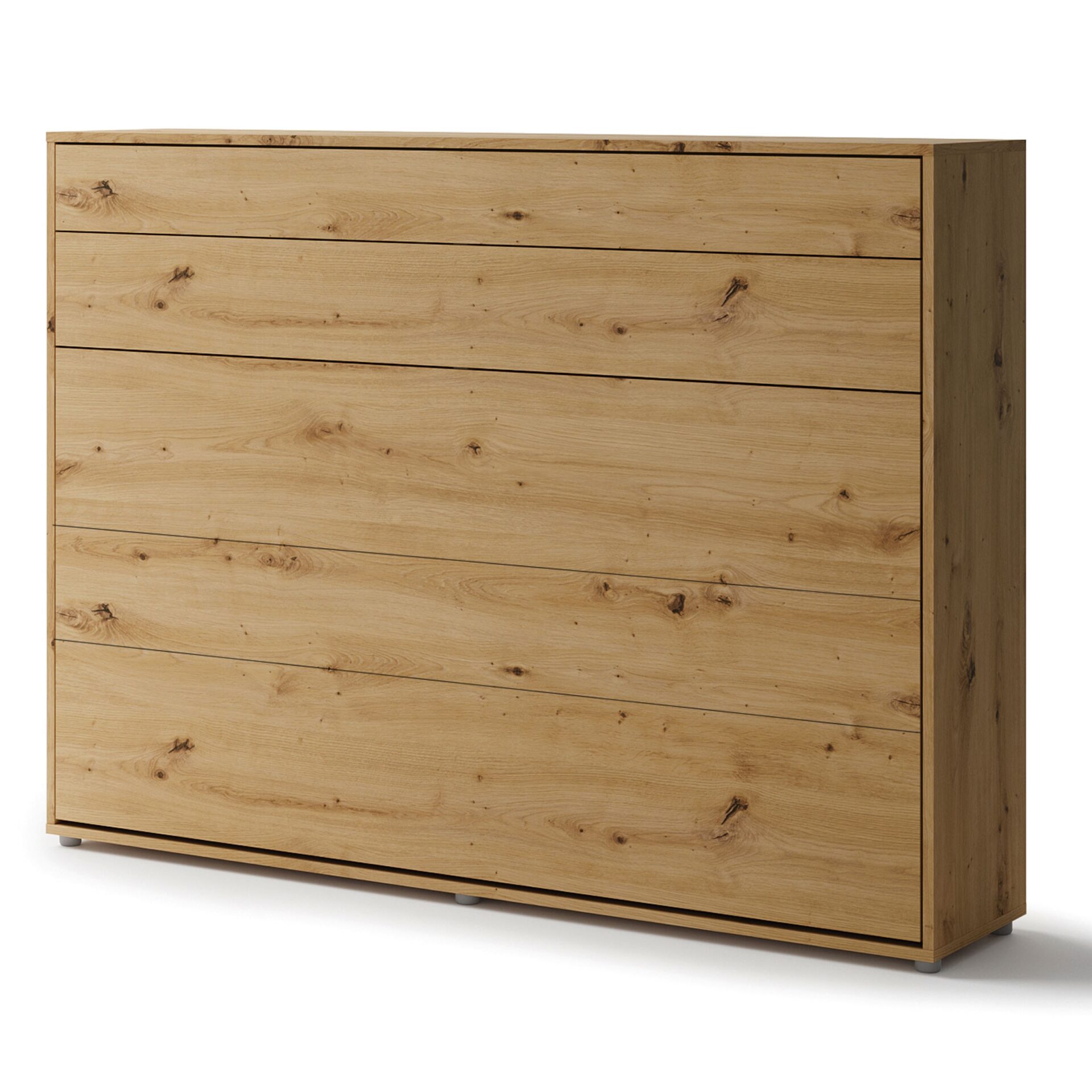 Кровать Lenart BED CONCEPT BC-04 — это горизонтальная откидная кровать шириной 140 см в отделке под дуб ручной работы, доступная с экспресс-доставкой. Это практичное решение позволяет легко создать комфортное спальное место, а в сложенном виде освободить место для повседневных дел. Компания Lenart разработала модель BC-04 с учетом современных интерьеров, где функциональность, безопасность и эстетика имеют первостепенное значение — это подтверждается престижной золотой медалью MTP 2019 года. Кровать оснащена практичными внутренними полками, идеально подходящими для хранения книг, декоративных предметов или полезных вещей. Прочный металлический каркас, деревянные реечные основания и стабилизатор матраса обеспечивают комфортный сон, сравнимый с классической кроватью. Благодаря пневматическим подъемникам и системе плавного закрывания, открывание и закрывание мебели происходит легко, плавно и безопасно. Модель BC-04 — идеальное решение для небольших квартир, студий, детских или гостевых комнат, а также офисов, где иногда требуется спальное место. Универсальный дизайн в отделке под дуб ручной работы делает откидную кровать подходящей для многих интерьеров и может быть дополнительно оснащена выдвижными секциями и светодиодной подсветкой.
