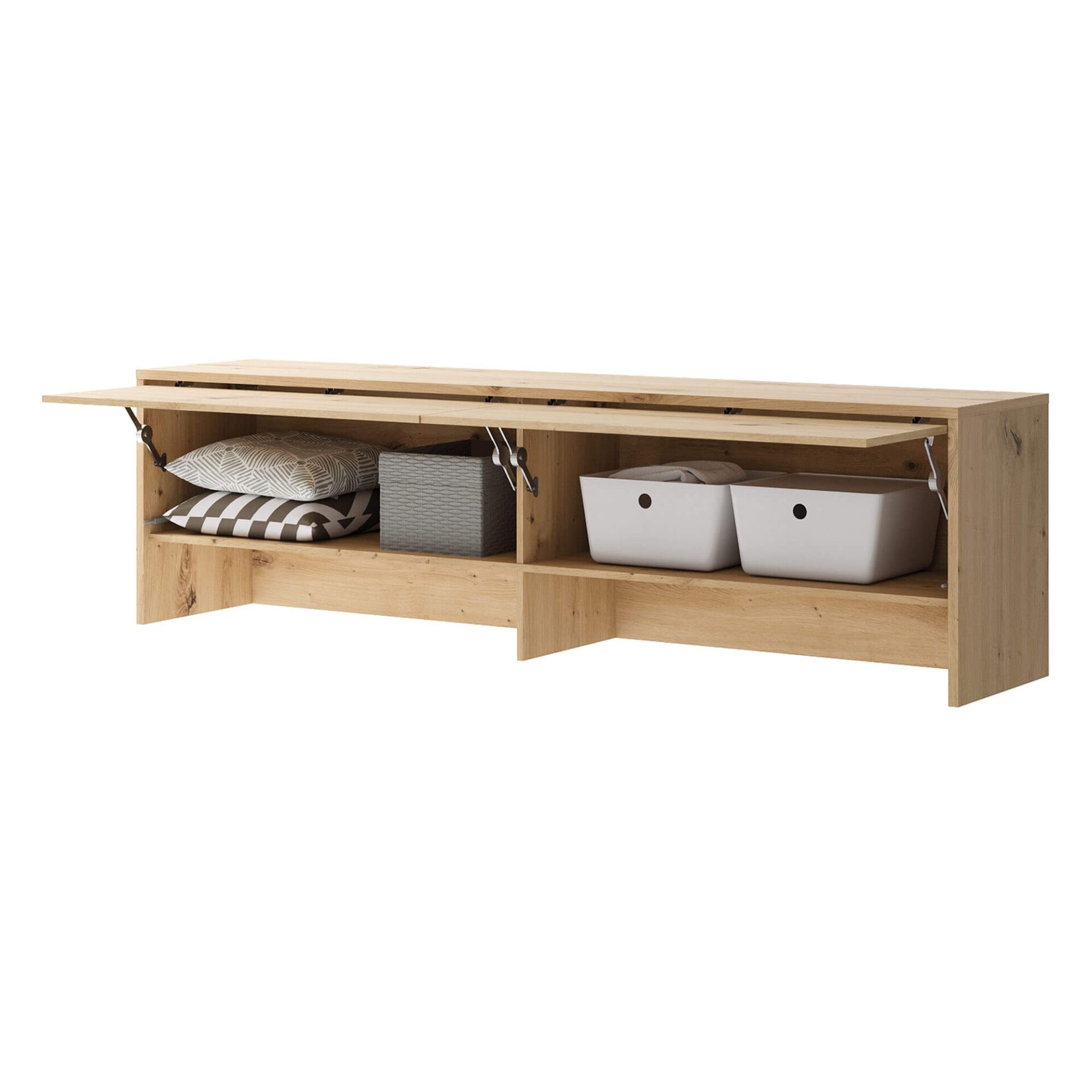 Две откидные секции с просторными отделениями для хранения.