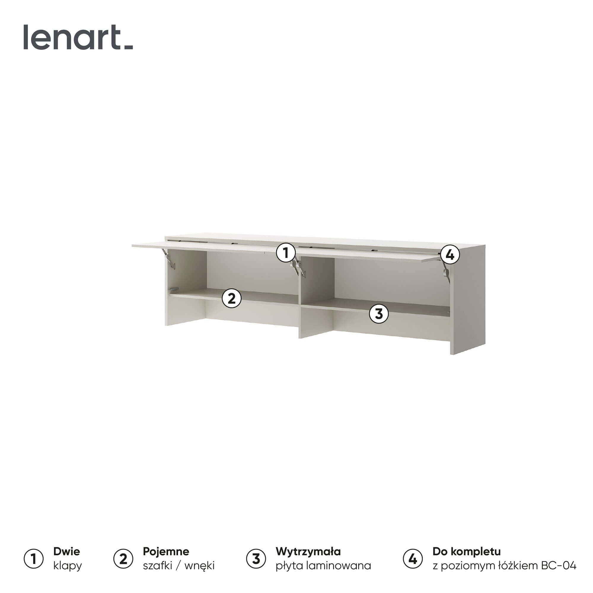 Кровать Lenart BED CONCEPT BC-09 — это дополнение к откидной кровати BC-04 в цвете «кашемир», позволяющее грамотно использовать пространство над кроватью и расширить функциональность всего комплекта. Оснащенная двумя откидными секциями и двумя открытыми нишами, она идеально подходит для хранения и демонстрации различных предметов. Кровать Lenart BED CONCEPT BC-09 в цвете «кашемир» сочетает в себе современный внешний вид и практичность, что делает её идеальным дополнением к любому интерьеру. Просторные отделения, скрытые за откидными секциями, вмещают одежду, текстиль и аксессуары, а открытые полки удобно хранят книги, украшения или мелкие предметы, которые всегда должны быть под рукой. Это дополнение делает откидную кровать более полной и удобной в повседневном использовании, а весь комплект приобретает эстетически привлекательный и гармоничный вид. Мебель изготовлена из прочного, устойчивого к царапинам и влаге ламинированного ДСП, а кромки защищены прочным ABS-пластиком, что обеспечивает долговечность и износостойкость. Кашемировый цвет придает интерьеру элегантный, сдержанный характер, легко сочетающийся как с современными, так и с классическими интерьерами.