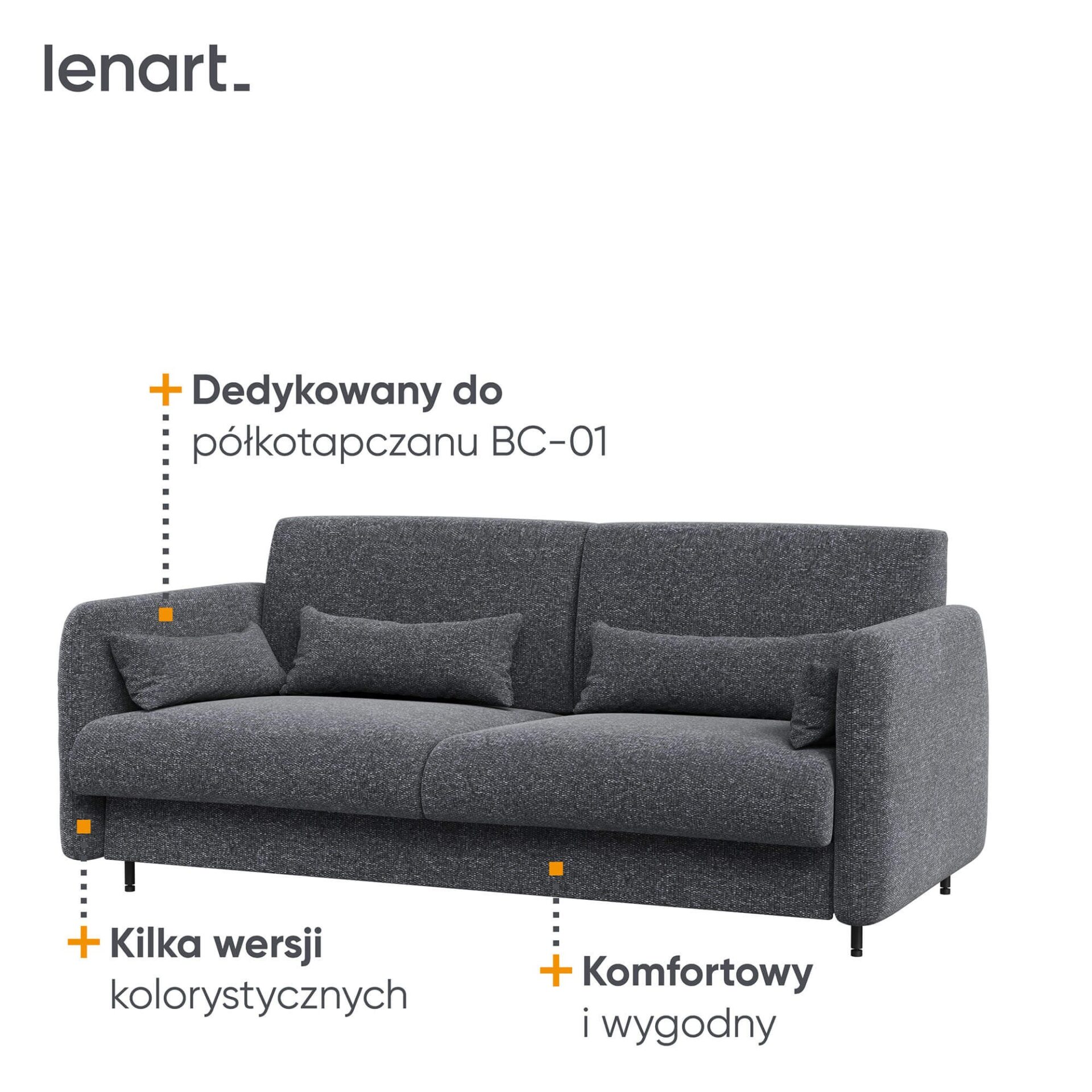 LOVOS KONCEPCIJA BC-18 – Sofa 140, skirta BC-01 – grafito spalvos ART 82630 / meniško ąžuolo priekis