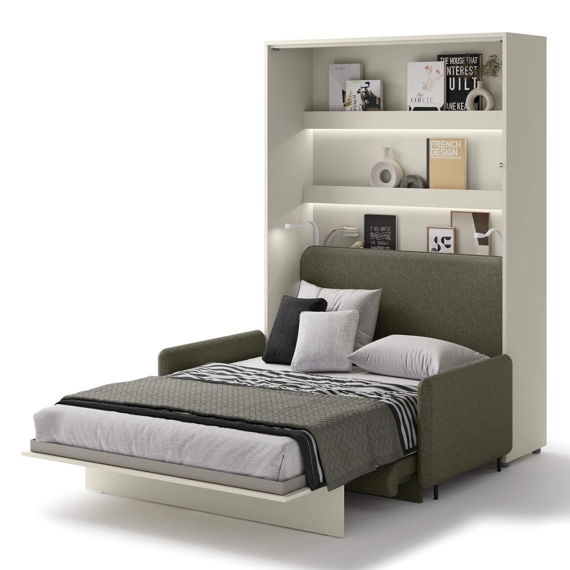 Диван Lenart BED CONCEPT BC-18 разработан для откидной кровати BC-01, в которую помещается матрас шириной 140 см. Компания Lenart разработала эту модель, уделяя особое внимание комфорту и современному дизайну. Диван BC-18 с зеленой обивкой и белой глянцевой передней панелью сочетает в себе элегантность и функциональность, что делает его идеальным для небольших помещений. Система BED CONCEPT позволяет за считанные секунды превратить вашу гостиную в полноценную спальню. Диван служит удобным местом для отдыха и общения днем, а вечером превращается в уютную кровать. Это практичное решение для тех, кто хочет максимально эффективно использовать пространство, не жертвуя эстетикой и комфортом.