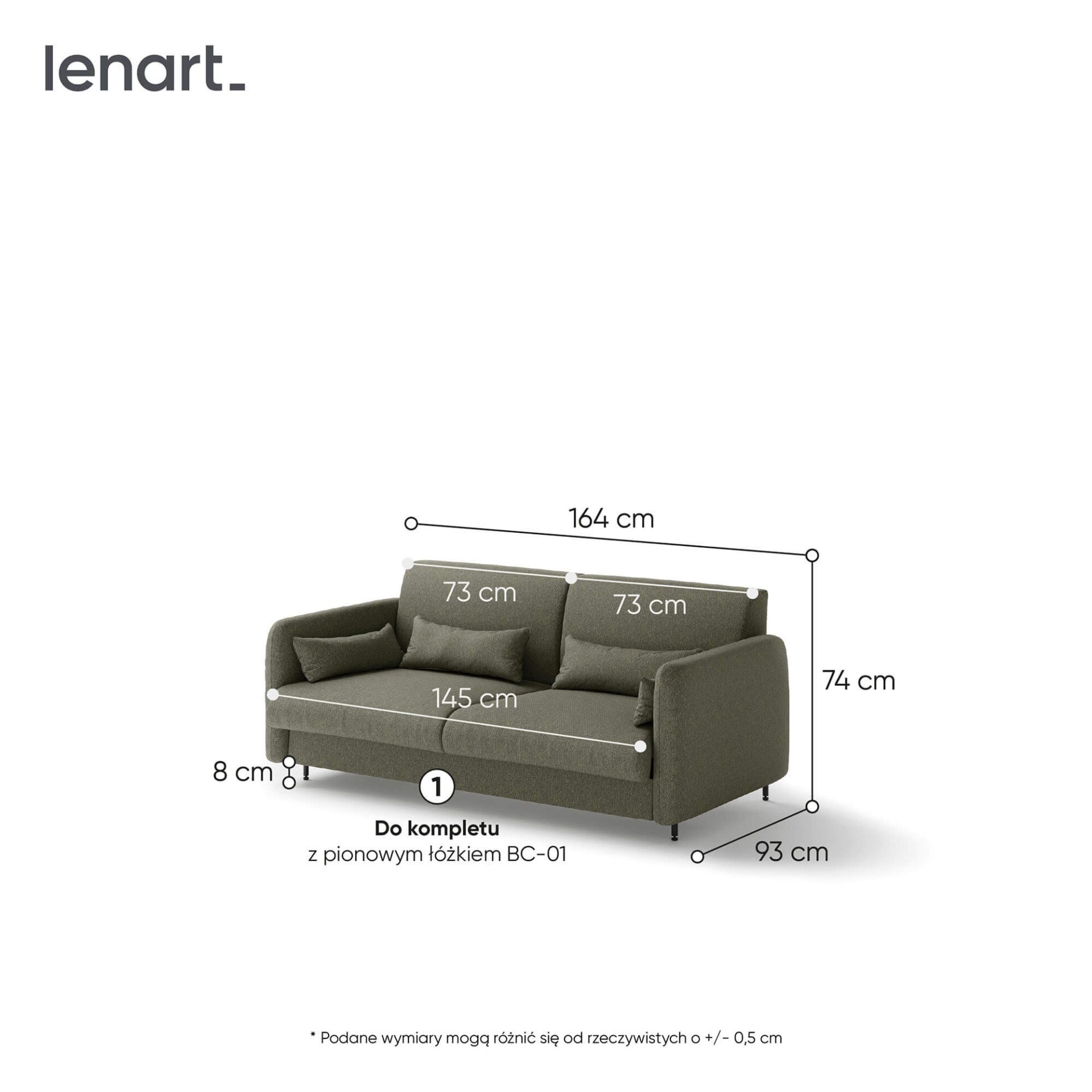 Диван Lenart BED CONCEPT BC-18 разработан для установки в откидную кровать BC-01, рассчитанную на матрас шириной 140 см. Компания Lenart создала эту модель, чтобы сочетать повседневный комфорт с элегантным стилем. Диван BC-18 в зеленой ткани LUKKA 38 с отделкой из натурального дуба идеально сочетает современный дизайн с акцентами из натурального дерева. Система BED CONCEPT позволяет легко превратить вашу гостиную в полноценную спальню. Днем диван станет удобным местом для отдыха и общения, а вечером превратится в уютную кровать. Это решение идеально подходит для небольших квартир, где важен каждый квадратный метр пространства.