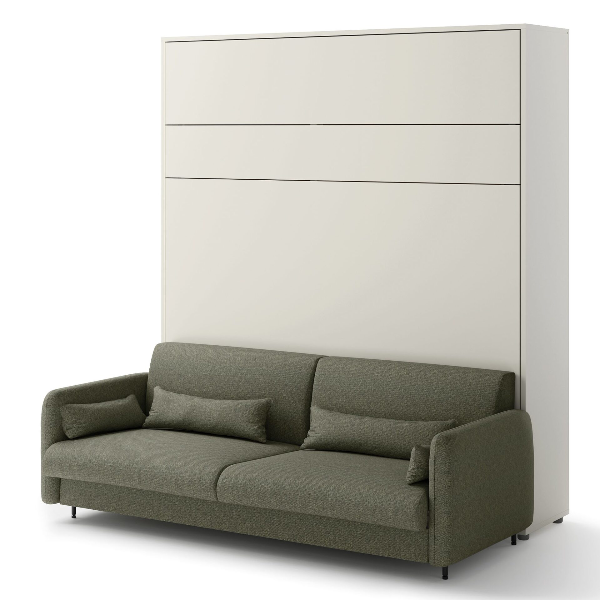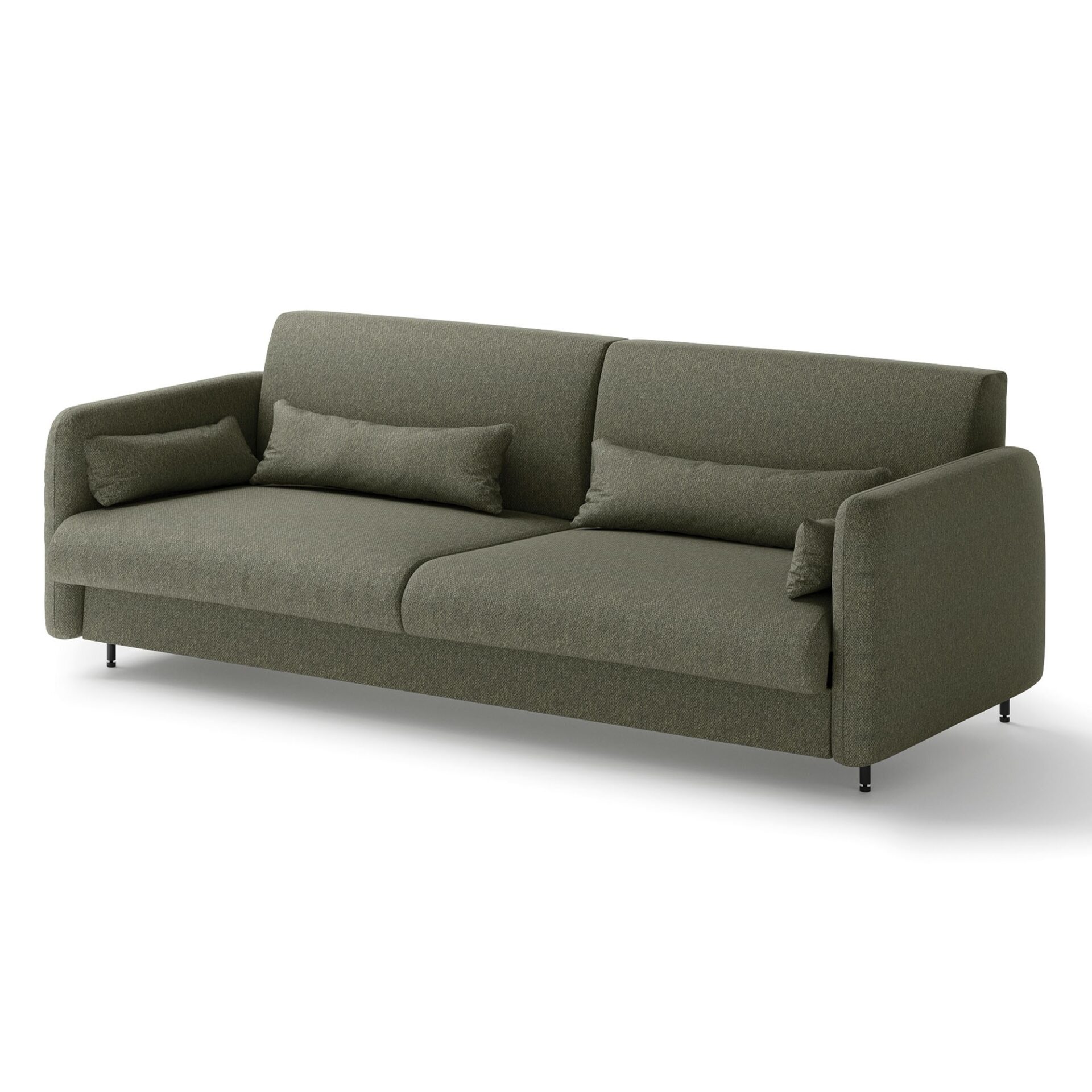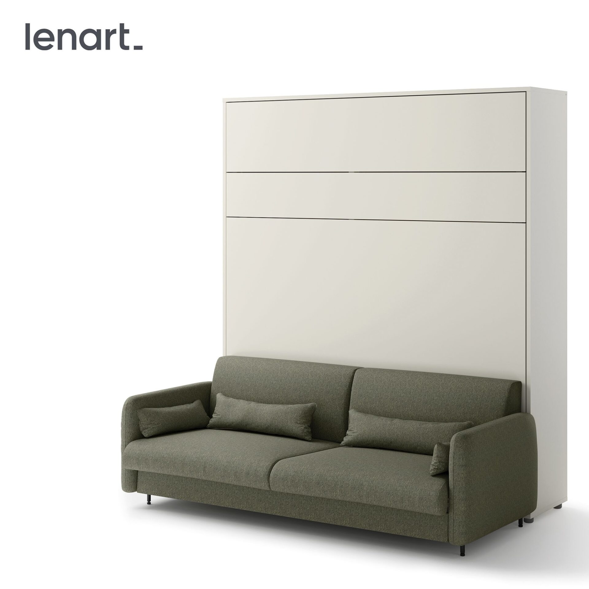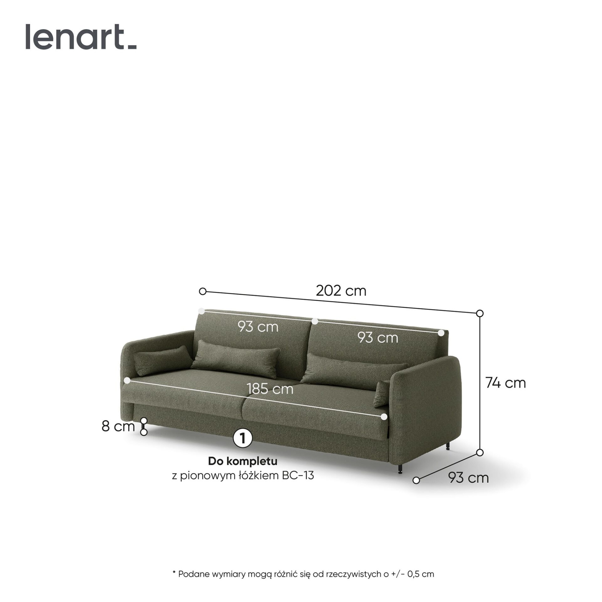 Диван Lenart BED CONCEPT BC-35 длиной 180 см разработан для откидной кровати BC-13 и доступен в зеленом цвете с отделкой из дуба ручной работы. Это практичное решение сочетает в себе комфорт повседневного отдыха с функциональностью откидной кровати. Компания Lenart позаботилась о том, чтобы диван BC-35 был не только элегантным, но и полностью совместимым с механизмом откидной кровати, обеспечивая максимальный комфорт. Диван постоянно крепится к откидной кровати, позволяя за считанные секунды превратить вашу гостиную в полноценную спальню. Просто снимите подушки спинки, и механизм автоматически опустит нижние подушки, создавая пространство для раскладной кровати. Стильное сочетание зеленого цвета обивки и отделки из дуба ручной работы придает интерьеру современный, но уютный характер. Если вы дополняете комплект боковыми полками, рассмотрите возможность установки распорных панелей, которые обеспечат легкий доступ к ящикам и дверцам откидной кровати, несмотря на выступающие боковые стороны дивана.